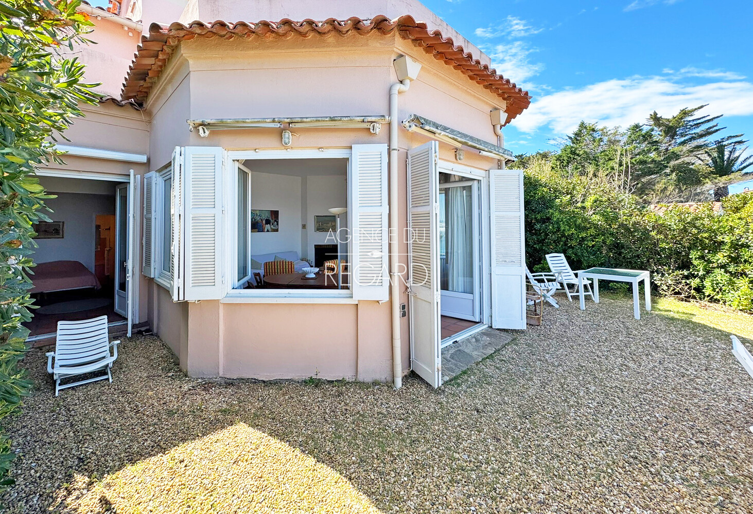 Exceptional! In Porquerolles, right on the water with its pontoon, this 87sqm apartment offers a magnificent view of the sea and the port. It is extended by a private garden of 96sqm, not overlooked, with 12 meters of sea frontage which gives direct access to the pontoon. Calm is required since it is away from the noise and tourist movements. Its access is on one level, via a beautifully flowered courtyard where bicycles can be parked and via a loggia converted into a common entrance hall. It has 3 bedrooms, 2 bathrooms with toilets, a kitchen and a living room which will require renovation work. DPE: E – GES: E