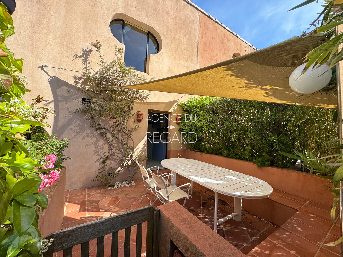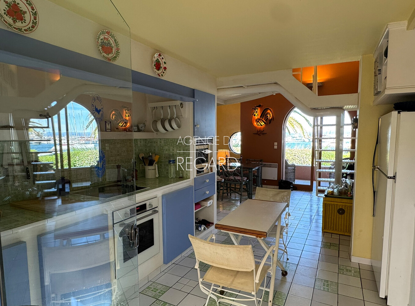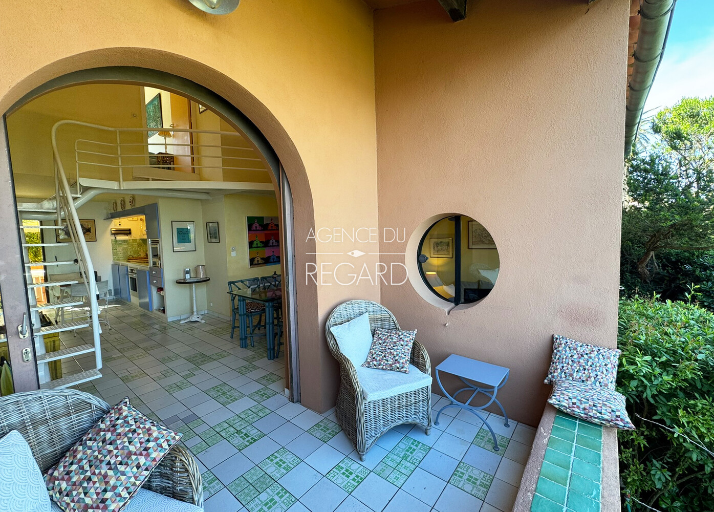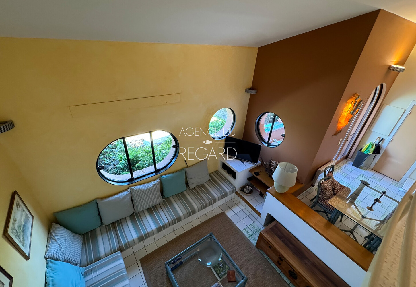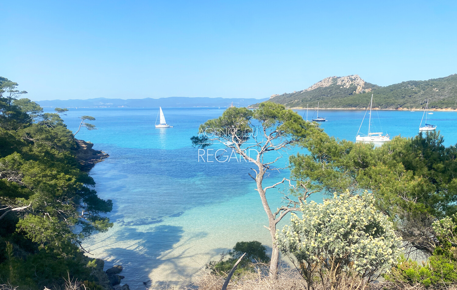 The island of Porquerolles is a magical place just a few minutes by boat from the Giens Peninsula in Hyères. This 86sqm duplex apartment with sea view is located in the heart of a 1970s condominium, in a lush park of 9,007sqm, 3 minutes walk from the village. Its location is prime, with a front row view of the sea, accessed via its 50sqm private garden. Peace and quiet are guaranteed, as it is away from the noise and bustle of tourists. Three bedrooms with their bathroom. Cellar. DPE : F