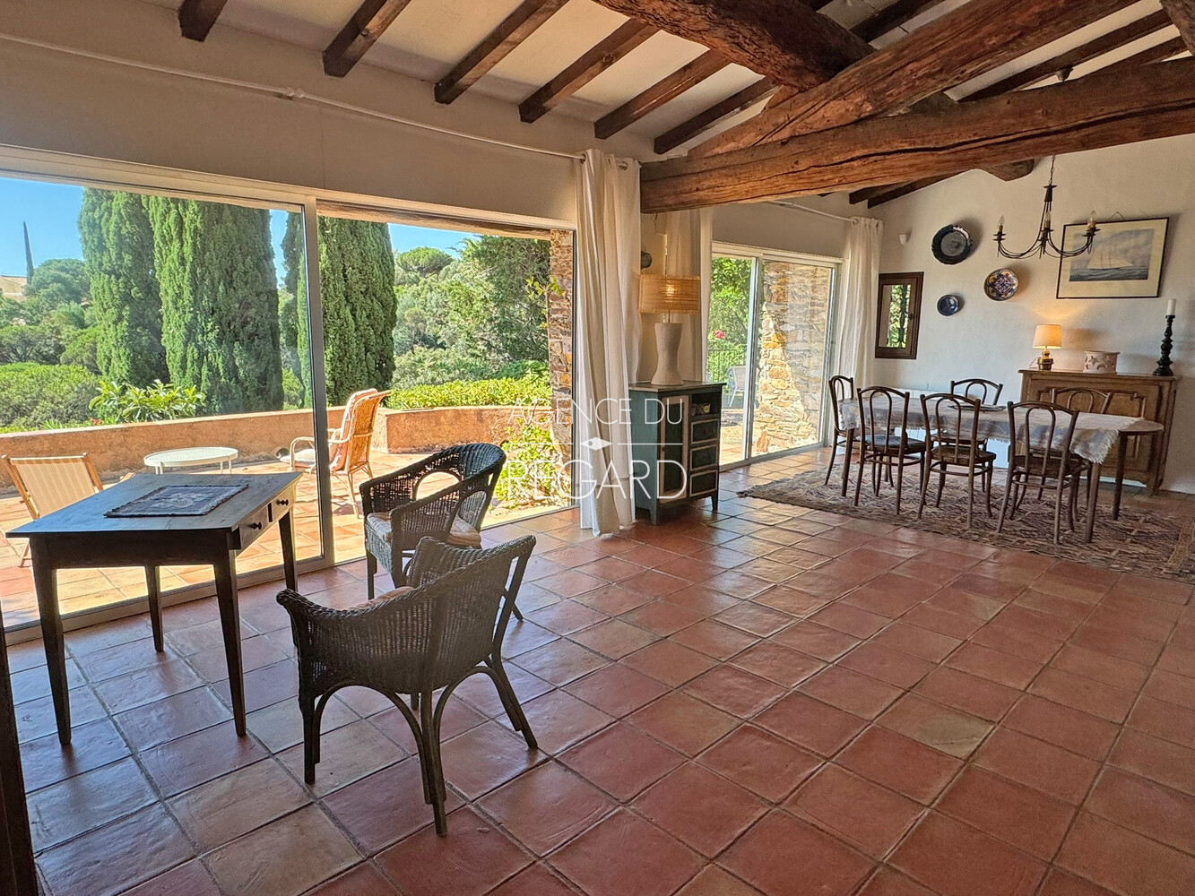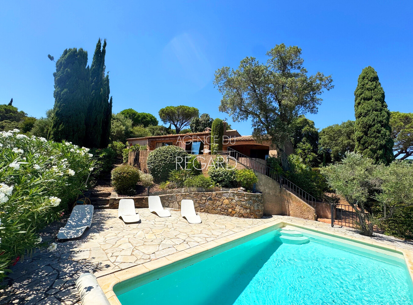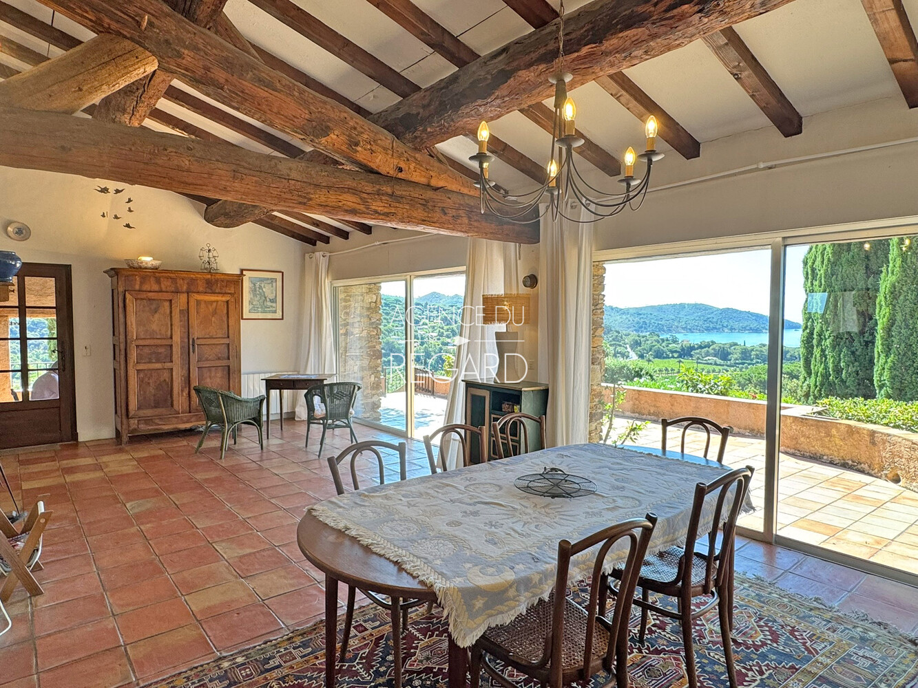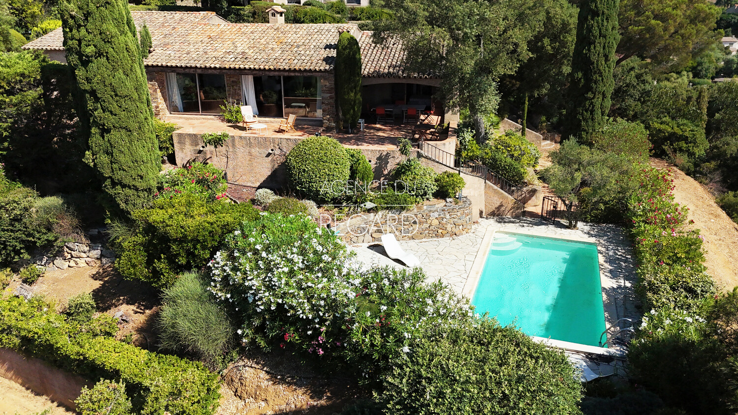This 1,730sqm property is located in the heart of a quiet residential area, just 12 mns walk from Gigaro beach, in La Croix-Valmer. A beautiful sea view extends across Gigaro Bay to Cap Lardier. The terraced garden is perfectly landscaped and planted with Mediterranean plants. The pool area, not overlooked, benefits from the surrounding tranquility. This provençal villa of 150sqm offers a total of 6 bedrooms and extends onto a south-facing terrace with a beautiful sea view. Swimming pool 7.5x3m. Chalet. Storage room. DPE:D ; GES :B .