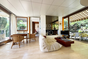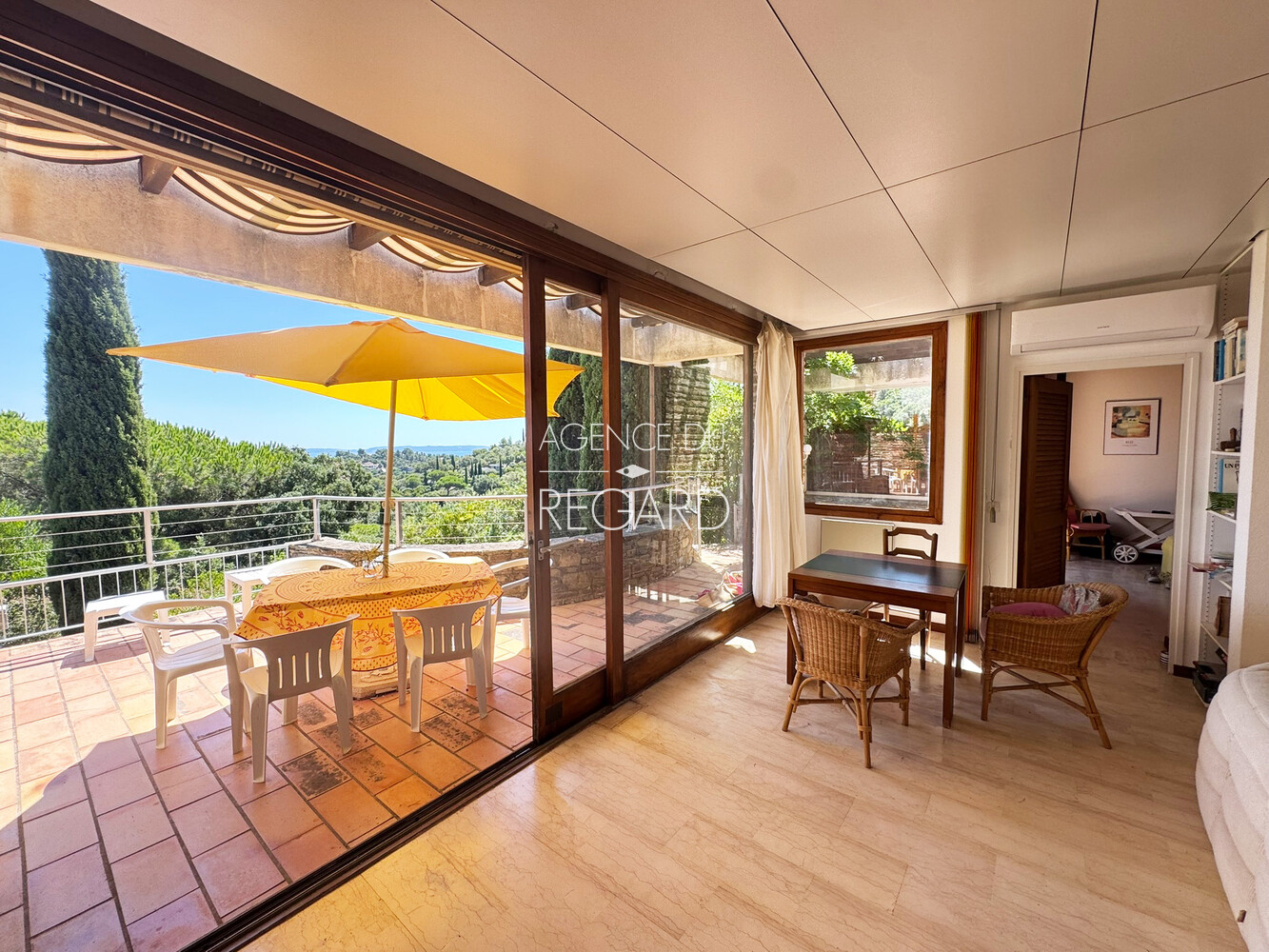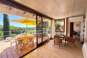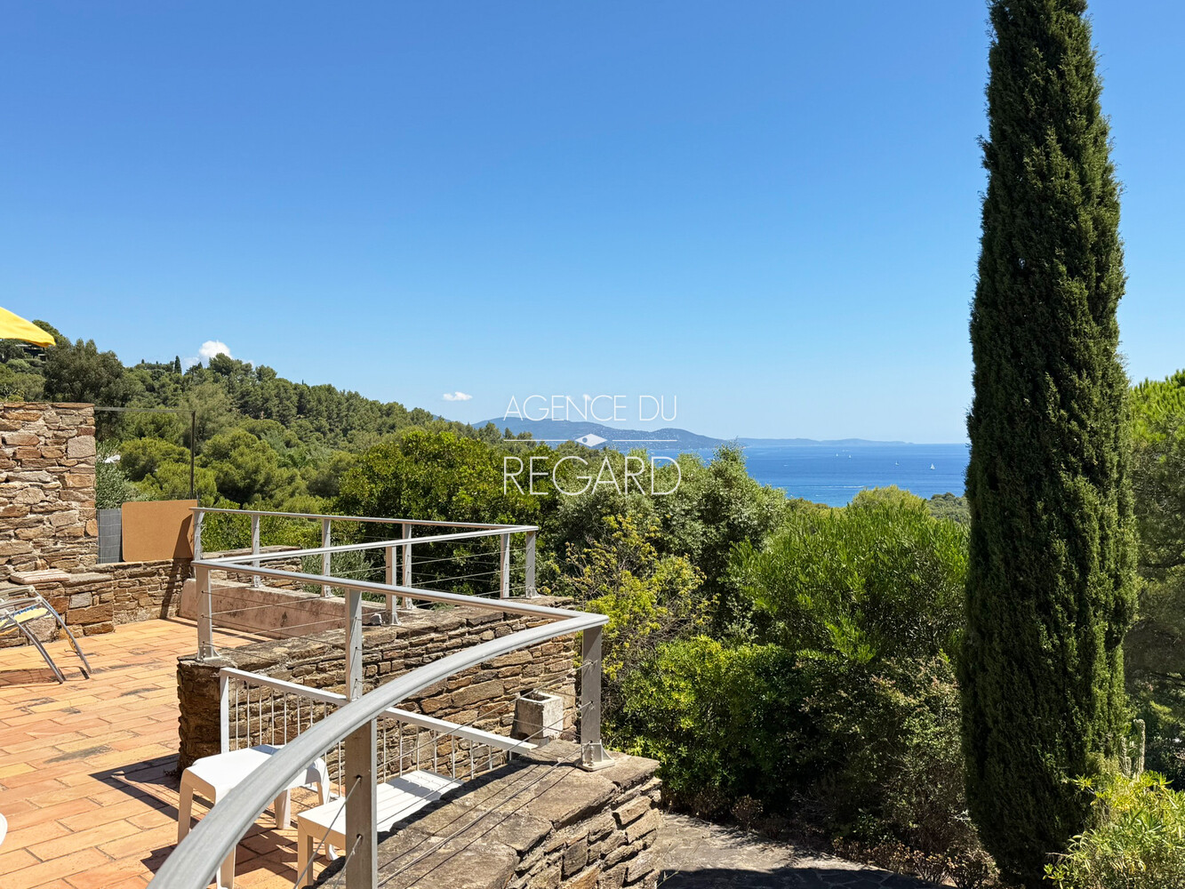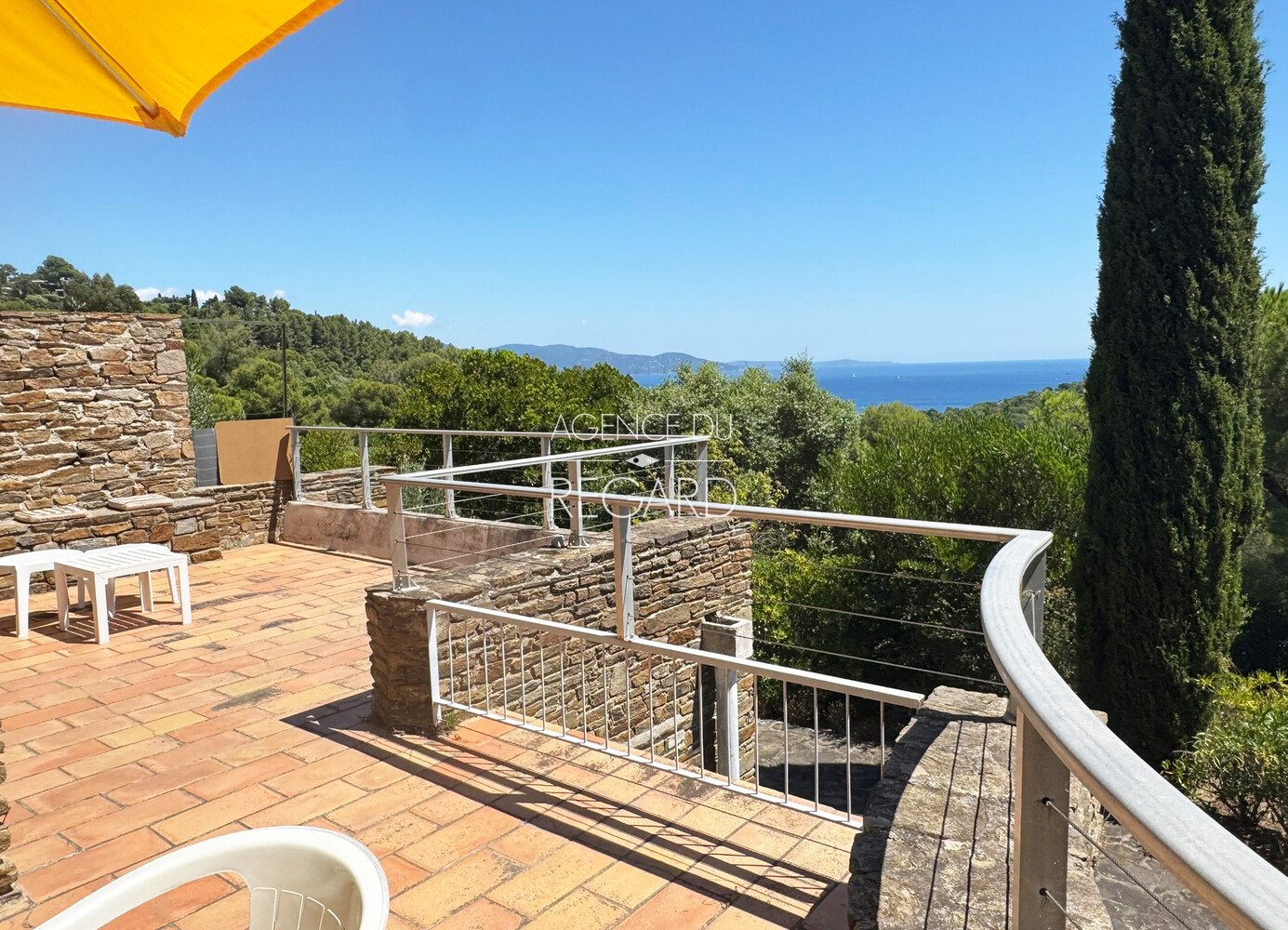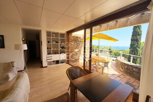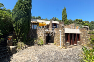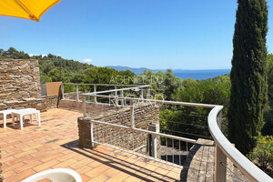 In Bormes-les-Mimosas, in the private and guarded Gaou Bénat domain, this 990sqm property boasts beautiful sea views across the Bay of Lavandou to Rayol-Canadel, including the Levant island. This 106sqm villa features 3 bedrooms and has undergone modern renovations. It extends into terraces that enjoy the sea view. A charming patio surrounded by a low stone wall and vegetation offers a transparent sea view from the living room. Workshop. Laundry room. Garage. DPE : E – GES : B