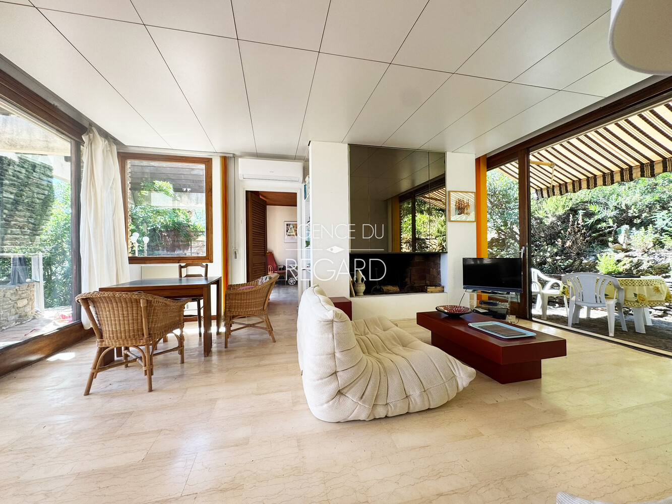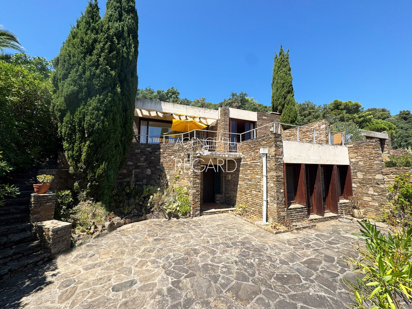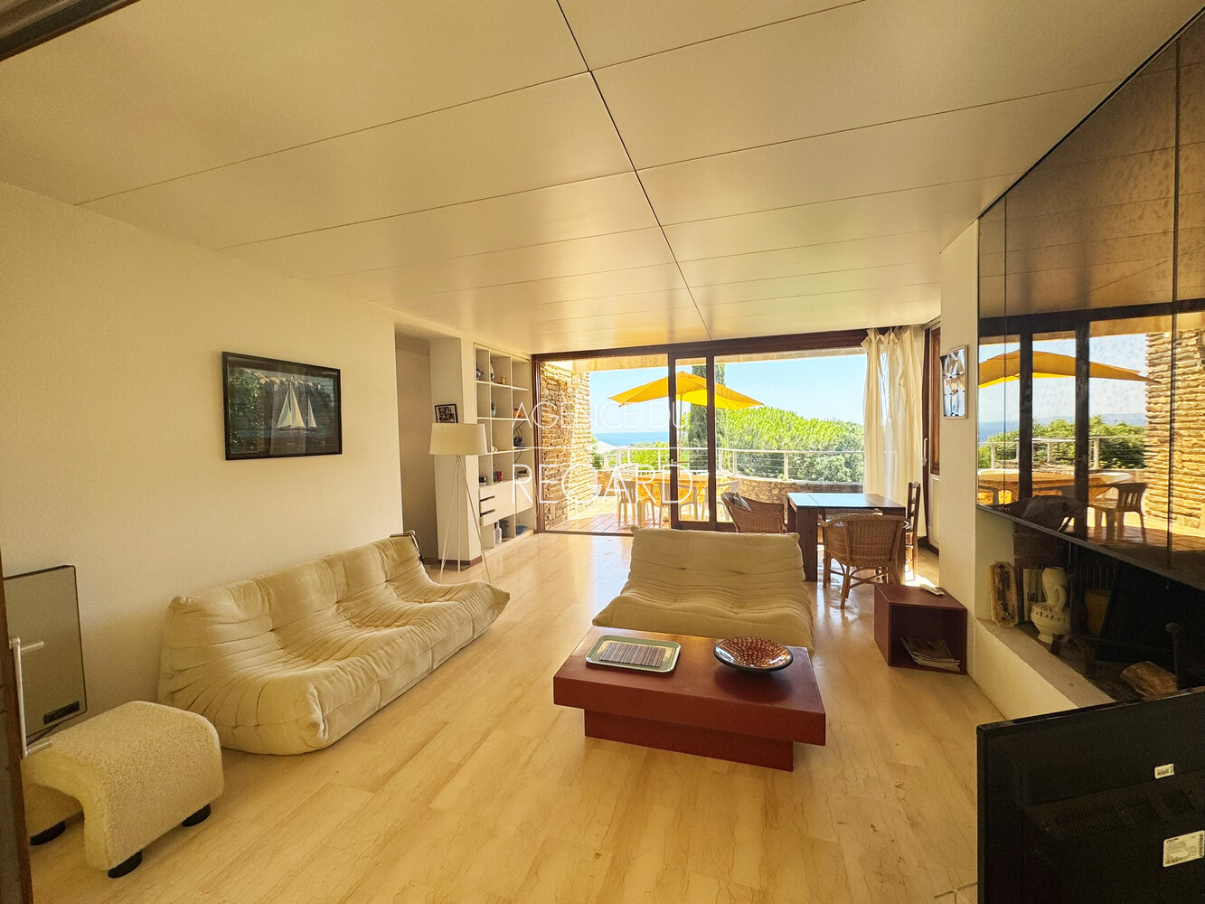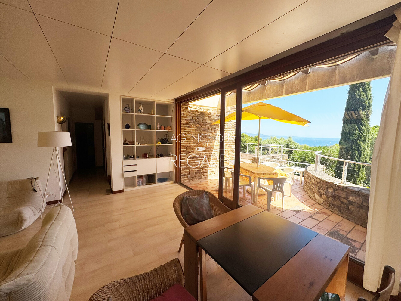In Bormes-les-Mimosas, in the private and guarded Gaou Bénat domain, this 990sqm property boasts beautiful sea views across the Bay of Lavandou to Rayol-Canadel, including the Levant island. This 106sqm villa features 3 bedrooms and has undergone modern renovations. It extends into terraces that enjoy the sea view. A charming patio surrounded by a low stone wall and vegetation offers a transparent sea view from the living room. Workshop. Laundry room. Garage. DPE : E – GES : B