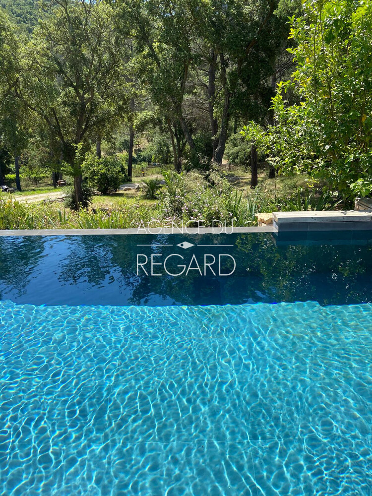 In La Londe-les-Maures, this unique 27,720sqm property enjoys a peaceful, unspoiled rural setting. The garden is beautifully landscaped with dry stone walls, wrought-iron arches, and charming flower-lined pathways. A lovely pool area features a pool house with a summer kitchen, barbecue, and a covered terrace with a jacuzzi. This 190sqm Provençal villa offers a hacienda atmosphere with charming décor. It also includes a 50 sqm guest house. Four bedrooms and fitness room. Swimming pool 5x11m. 2 garages.