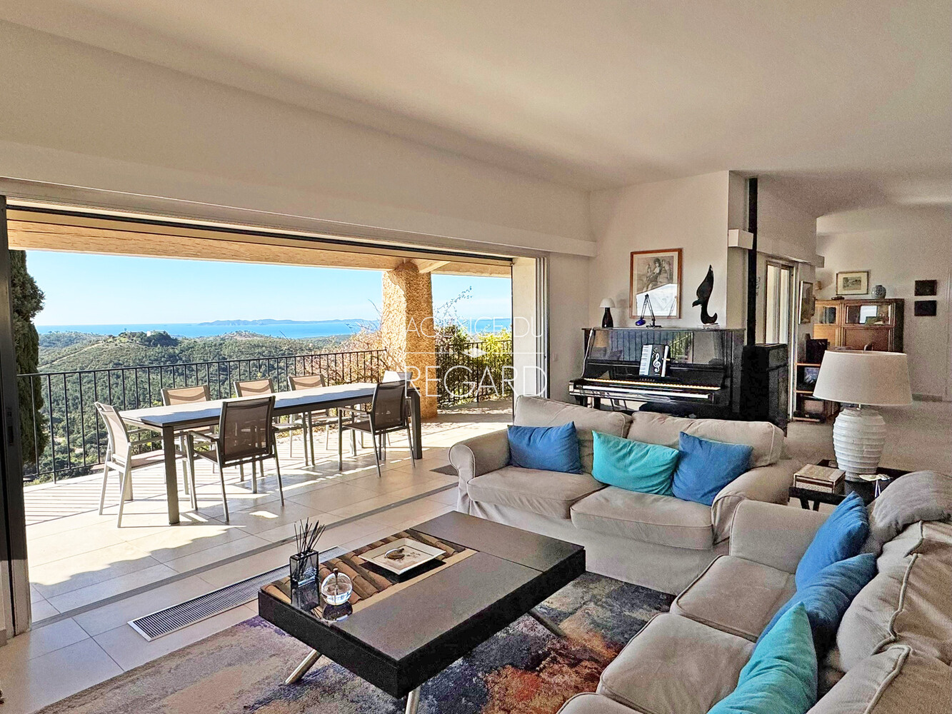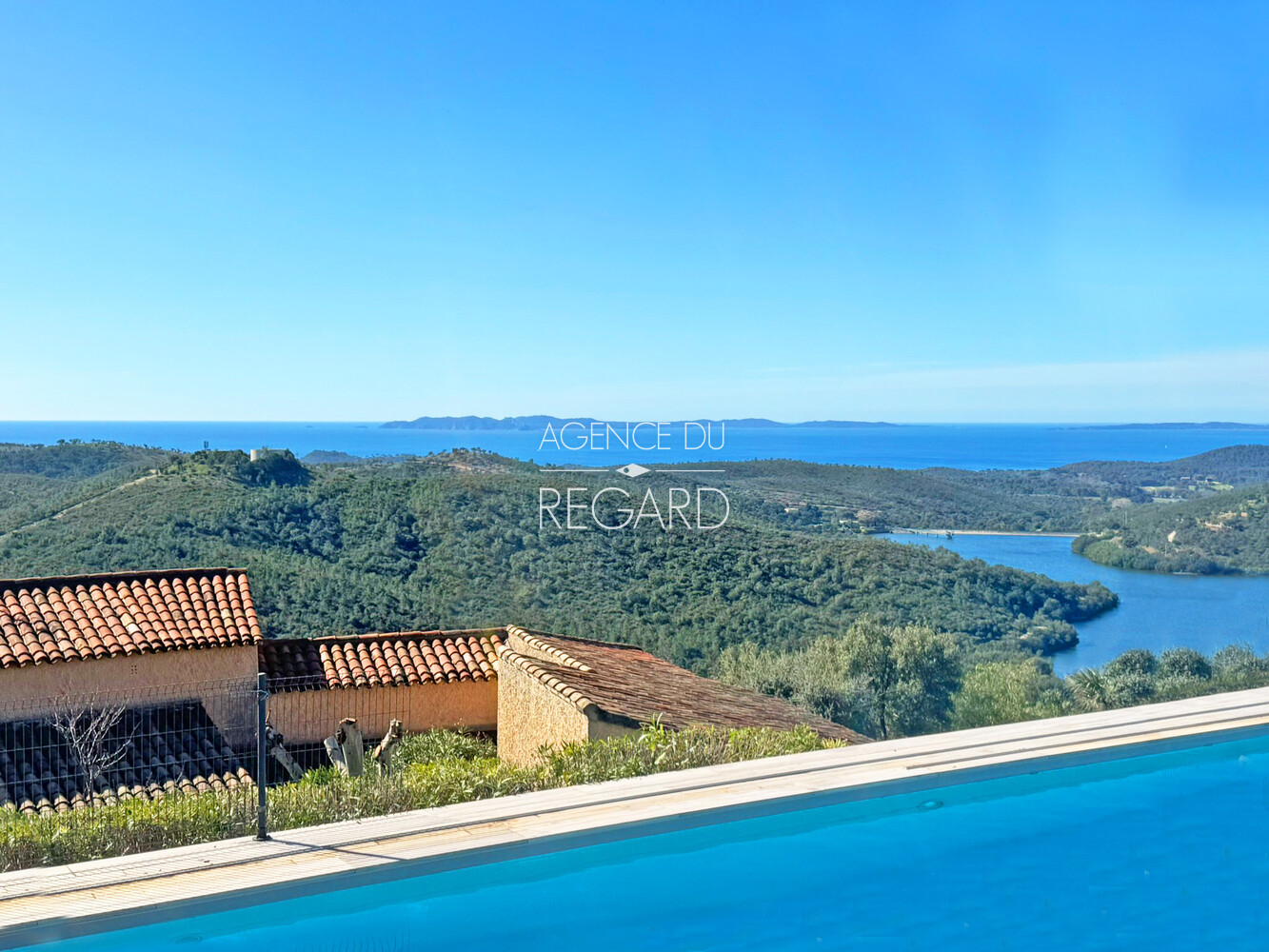 This 2,24sqm property is located between La Londe-les-Maures and Bormes-les-Mimosas, 15 minutes drive from their beaches and harbors. Situated atop a hill, the land is fully fenced and landscaped with wide terraces. It offers exceptional panoramic views of the sea, Golden islands, as well as Mount Coudon and Mount Faron. The traditional villa, of 260sqm, features a spacious 70sqm reception room extending onto a covered terrace with magnificent sea views. There is also a separate apartment, a pool house, an 11x6m swimming pool, a hammam, a pétanque court, two cellars, and a carport.