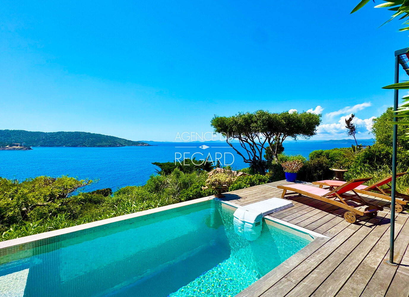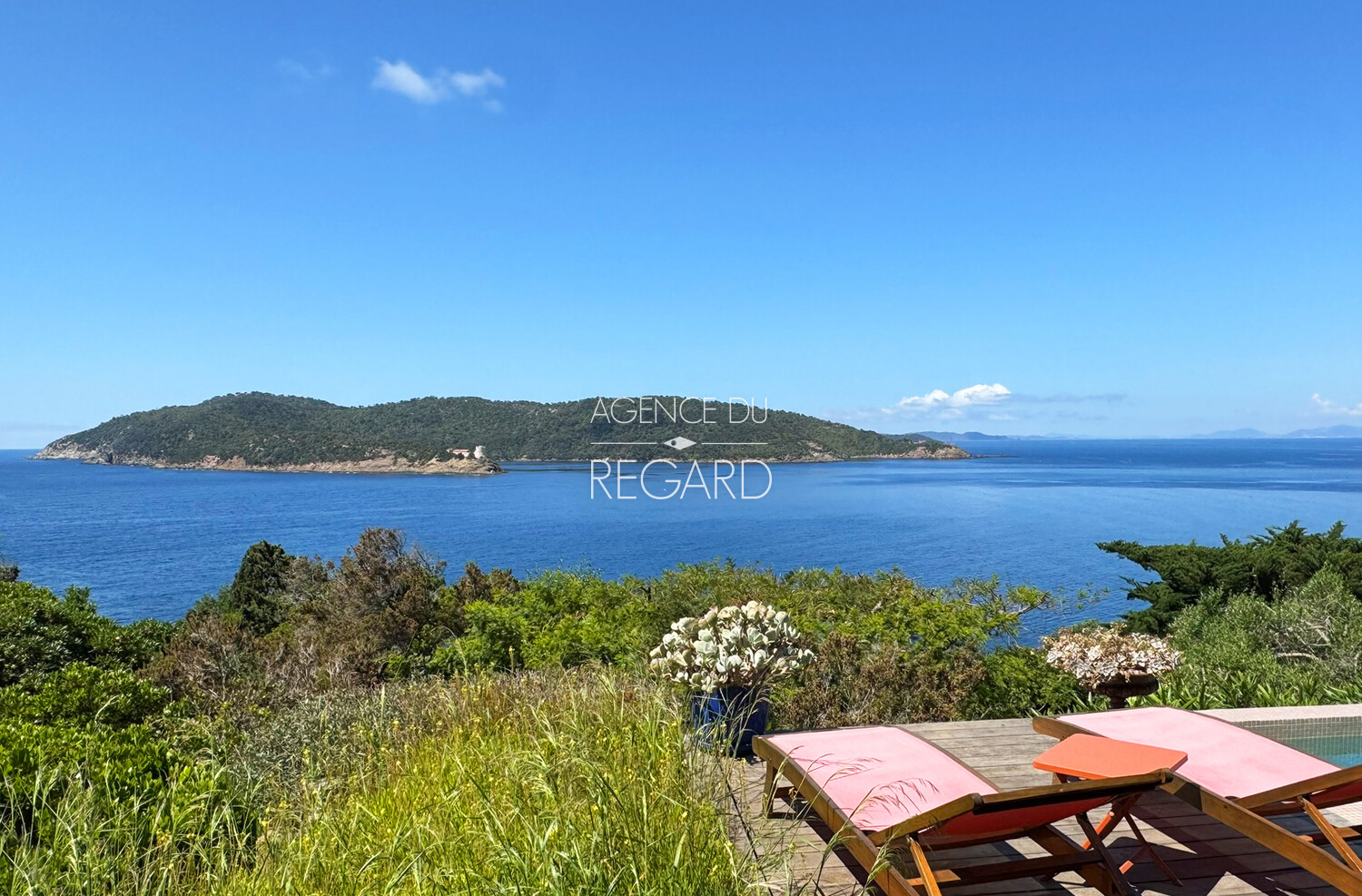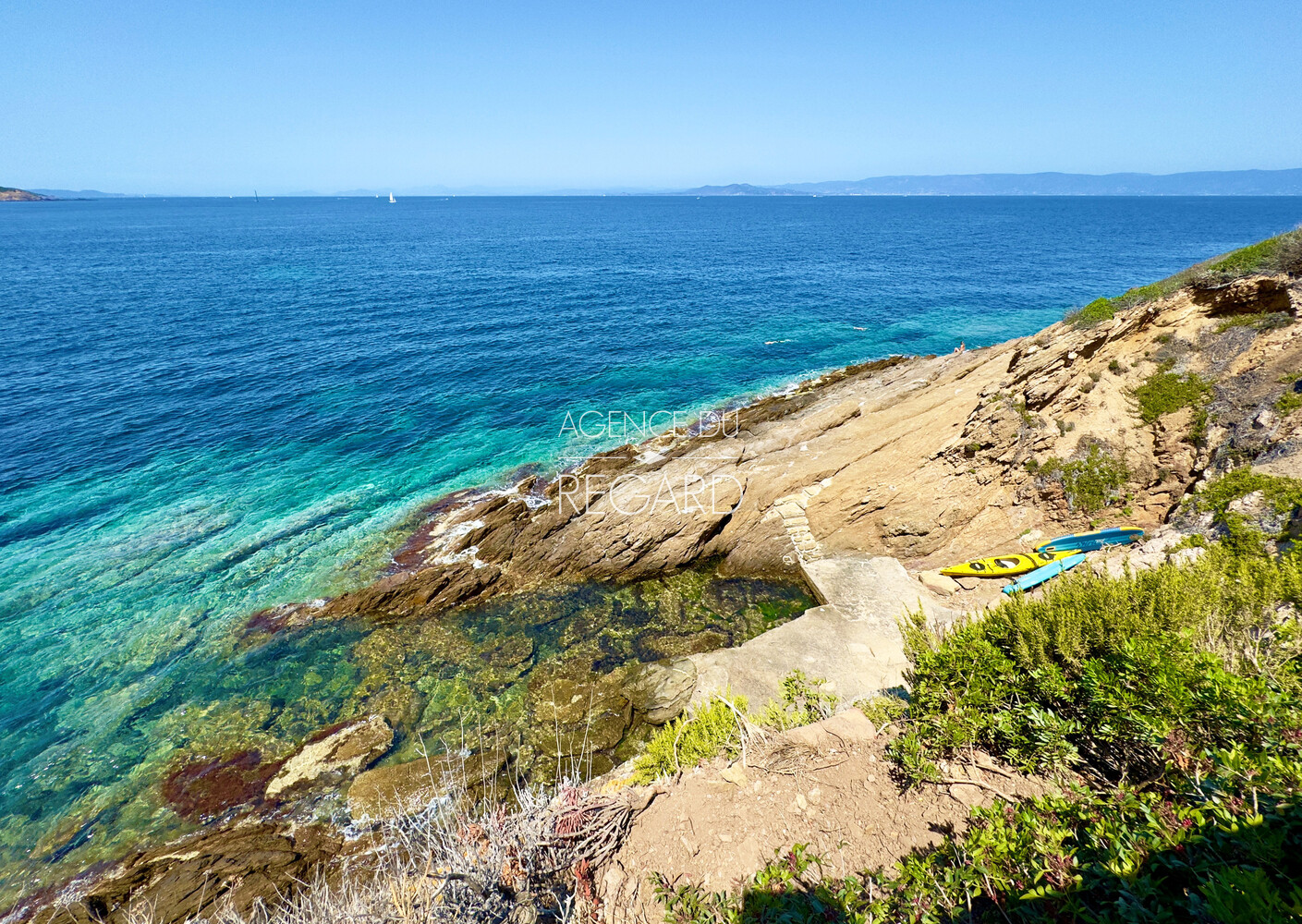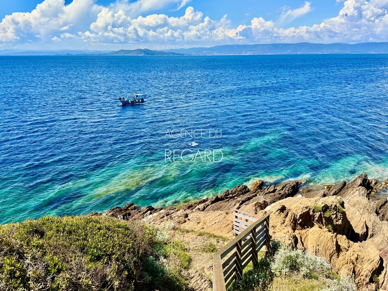 This property of about 1 610sqm, is just few steps from a cove with turquoise waters, in an area of 80 hectares with a small harbor, offers a majestic view on the island of Port Cros in front of Port Man, from where one can watches his anchored boat. The contemporary house of about 124sqm offers 4 bedrooms with their private bathroom. Magical sunsets to discover from the terrace or poolside.