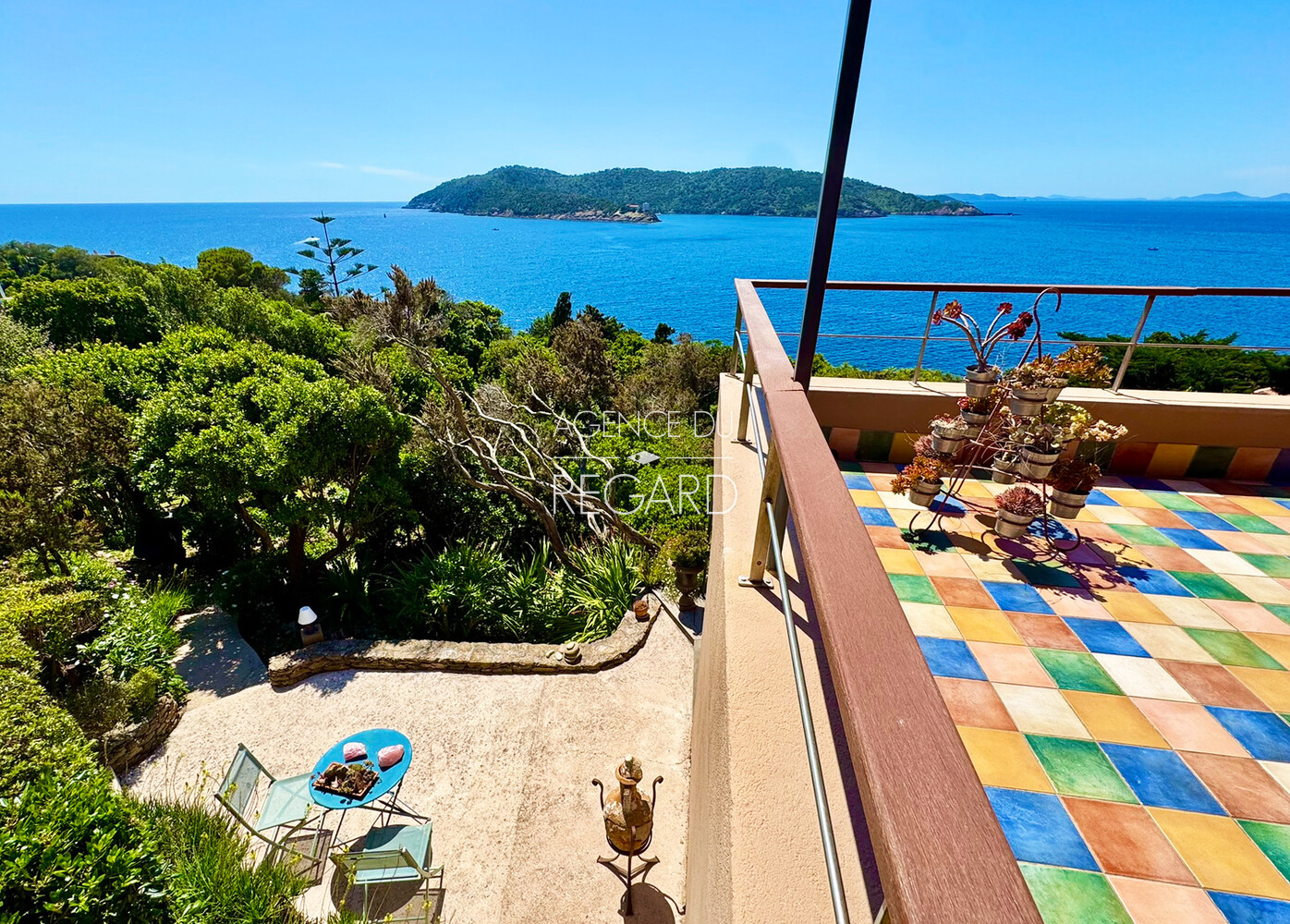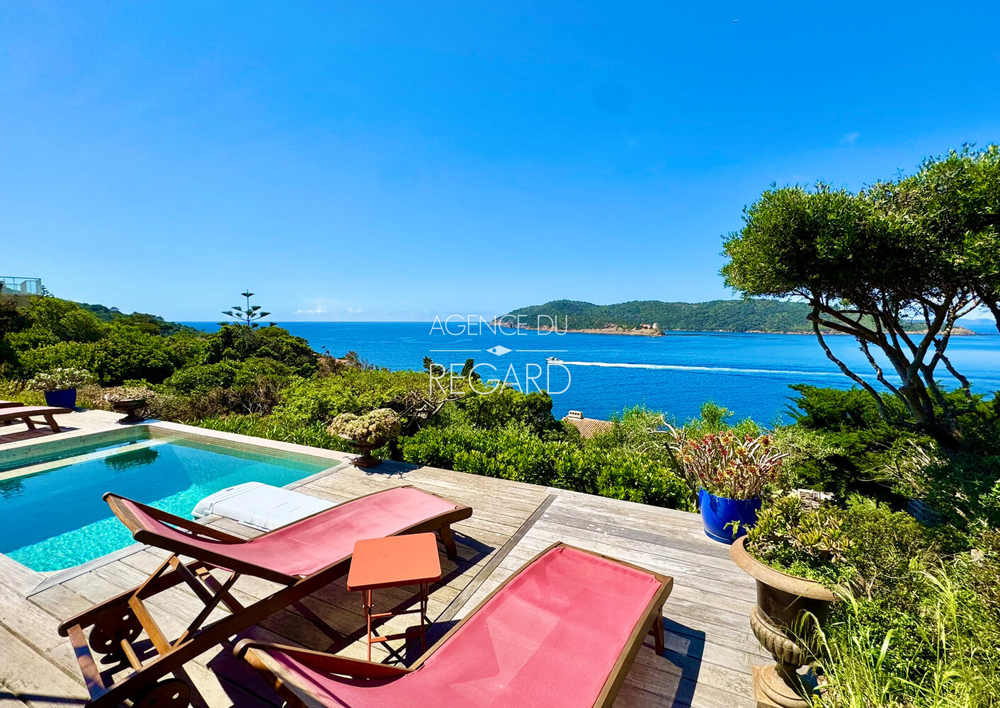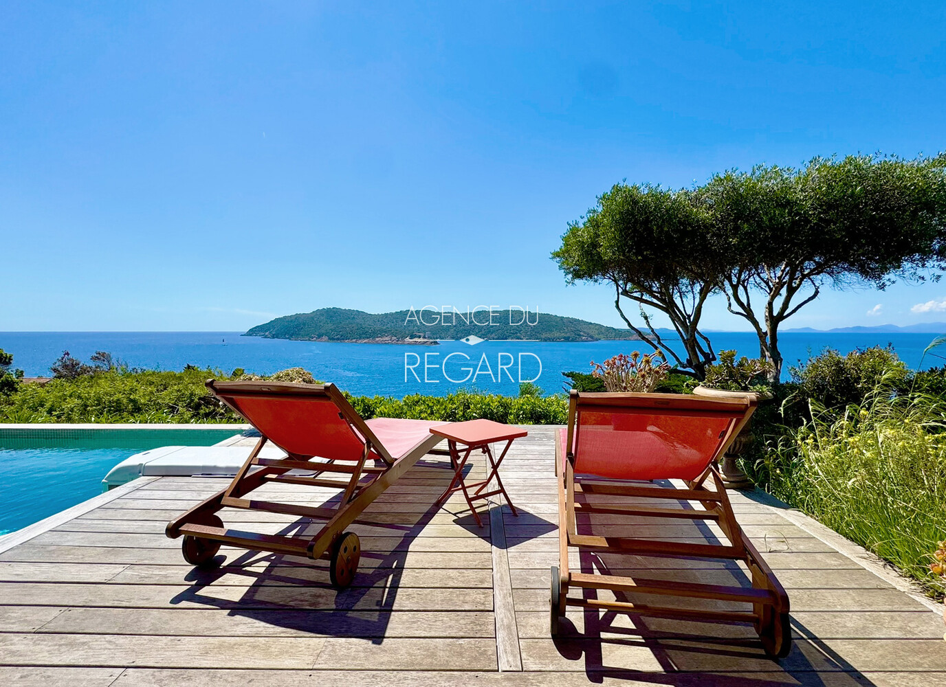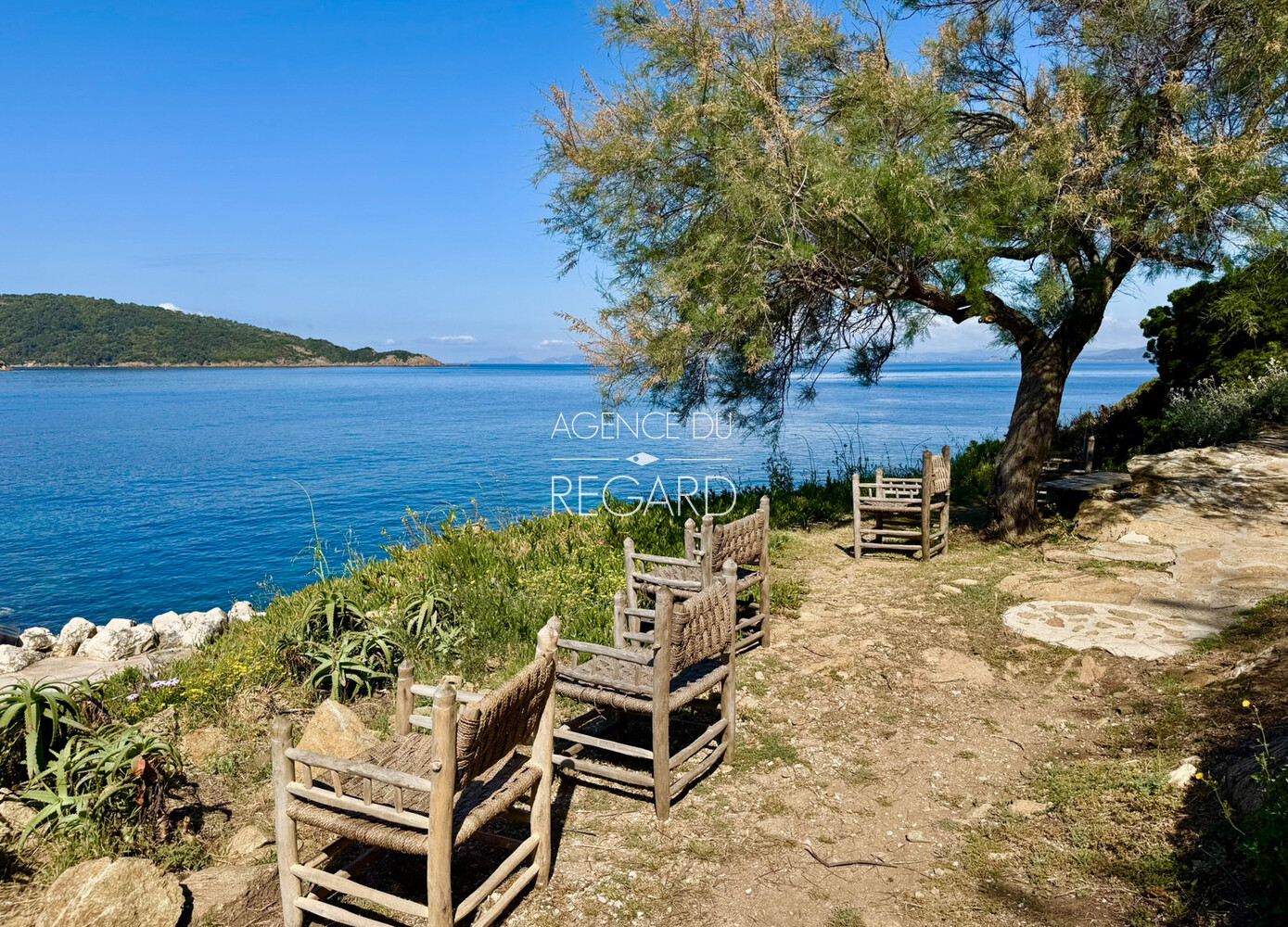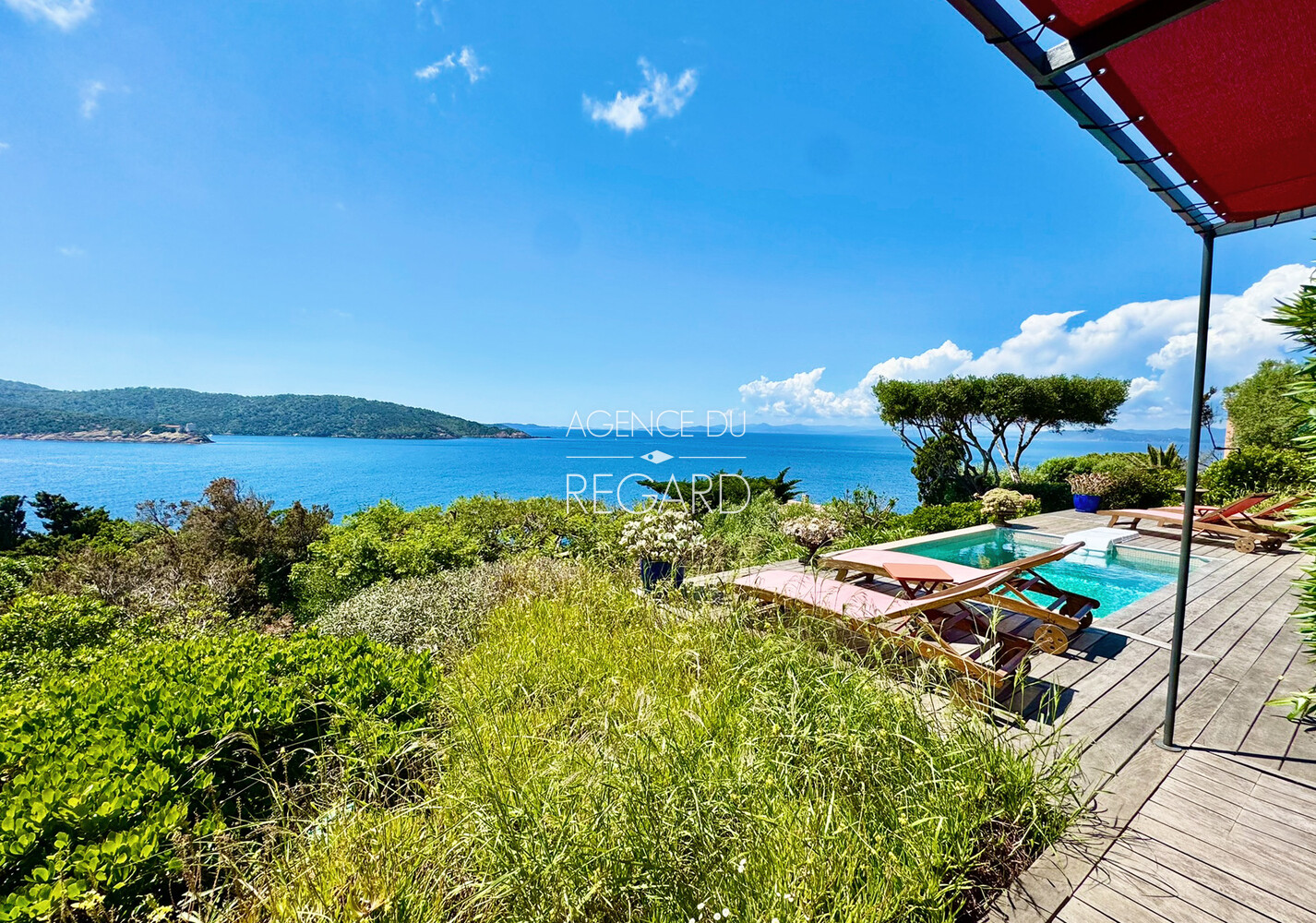 This property of about 1 610sqm, is just few steps from a cove with turquoise waters, in an area of 80 hectares with a small harbor, offers a majestic view on the island of Port Cros in front of Port Man, from where one can watches his anchored boat. The contemporary house of about 124sqm offers 4 bedrooms with their private bathroom. Magical sunsets to discover from the terrace or poolside.