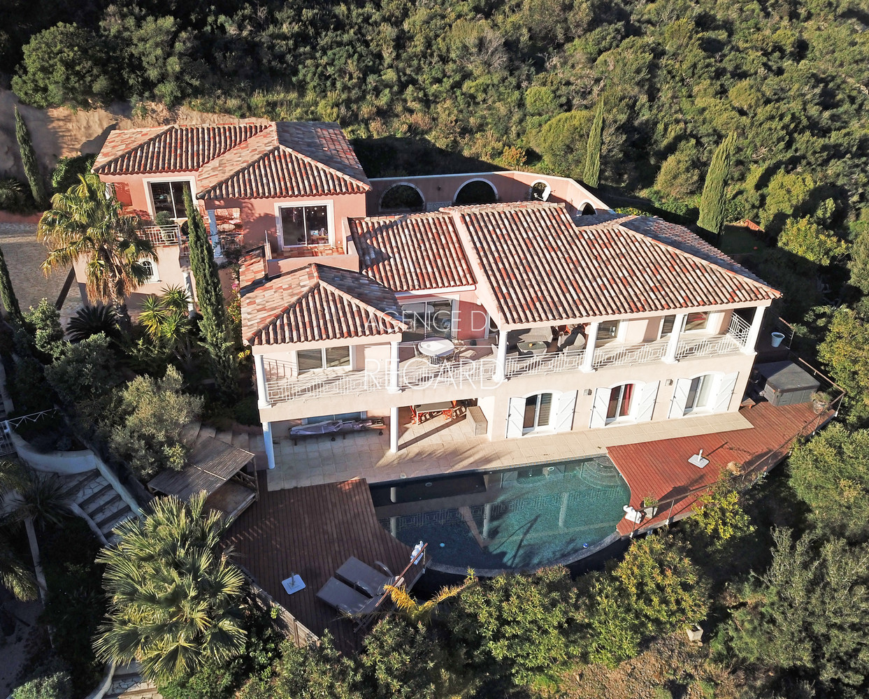 In the Lavandou, this property of about 1 403sqm offers beautiful views in succession over the waterfalls of St. Clair and the sea, from the bay of Lavandou to Cap Negre. Arranged in terraces, the plot hosts a patio 100sqm, a water horizon pool and jacuzzi area. The property is only 5 minutes by walk from the natural sandy beach of St. Clair and 15 minutes by walk from the port and shops of Lavandou. The villa with sea viewof about 366sqm, built in a Provencal style has 5 bedrooms and an independent studio. It offers a beautiful luminosity and large volumes in the living areas. Pool 5x10m. Garage for 4 cars.