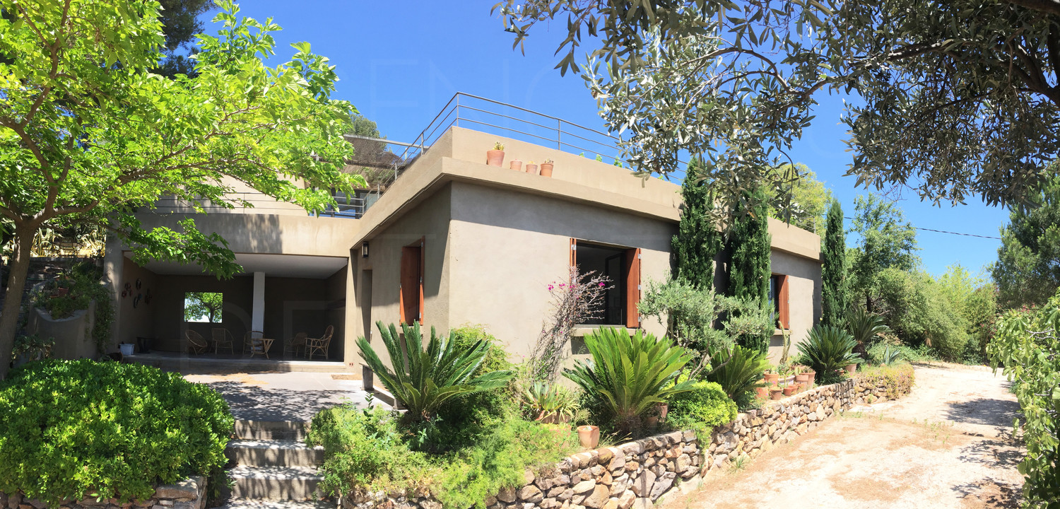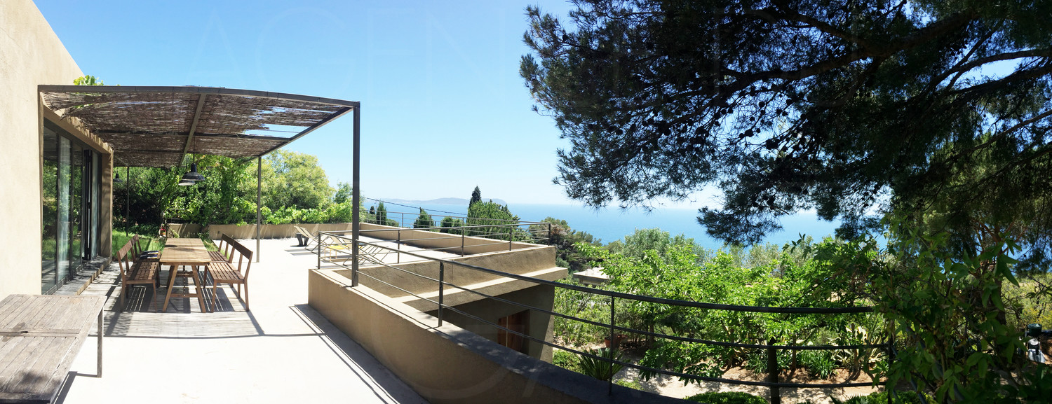This property of about 4 157msqm is located in the countryside of Carqueiranne. The plot is facing South and offers a sumptuous panorama on the sea and the Peninsula of Giens and the Fourmigues. It is laid out with large restanques where many Mediterranean species are located. Originally it was a cabanon and then an extension permit was obtained in 2004 for a contemporary villa with sea view of approximately 115.50sqm. It is raised on two staggered levels, oriented to the south, each enjoying a beautiful view of the sea.
