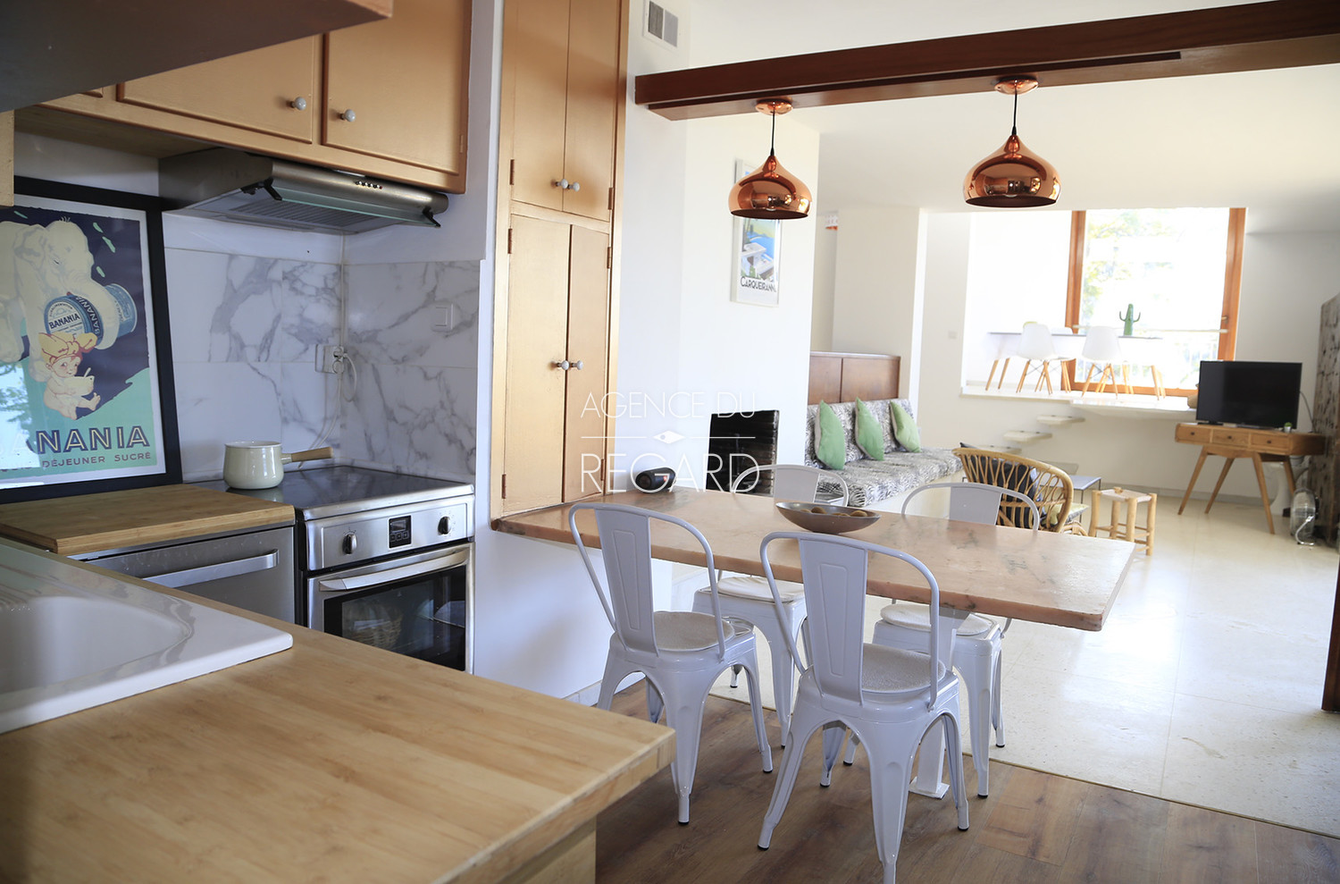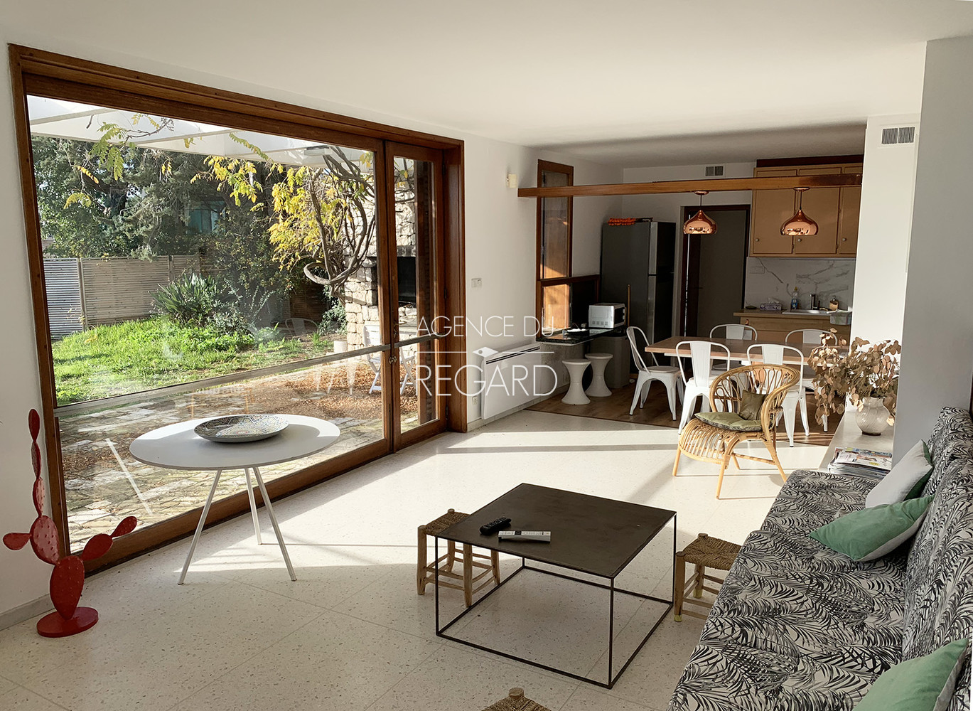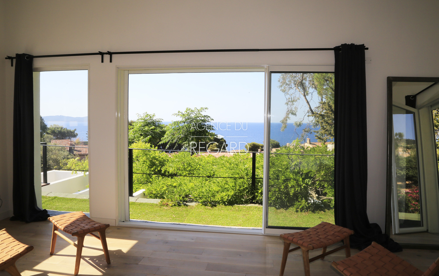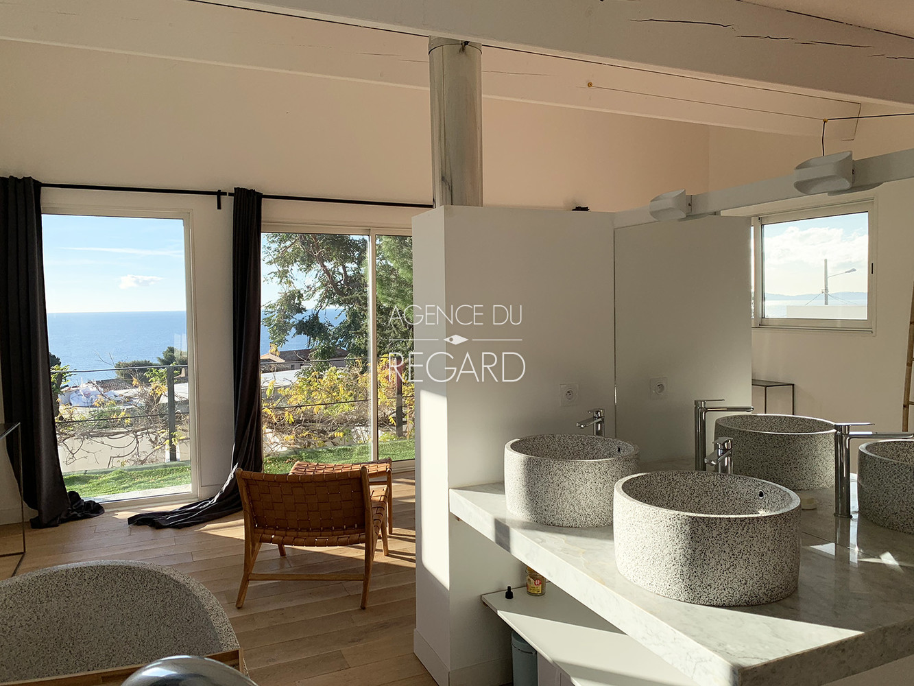 В Carqueiranne, этот вид на море собственности около 1000м2 расположен в районе Прадон 100 метров от пляжа. Полностью огорожено и с видом на юг, он имеет вид на море и полуостров Giens. Эта вилла с видом на море калифорнийского архитектора (примерно 249 м2), построенная в 1960-х годах, была отремонтирована. Это современный внешний вид с плоской крышей и широкими отверстиями, которые позволяют в красивой светимости. Он имеет 6 спален, включая 2 мастер-люкс и красивую гостиную около 60m2 открытия на бассейн. Убеждая автомобили. Бассейн 8.50x4m.