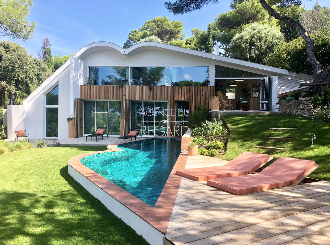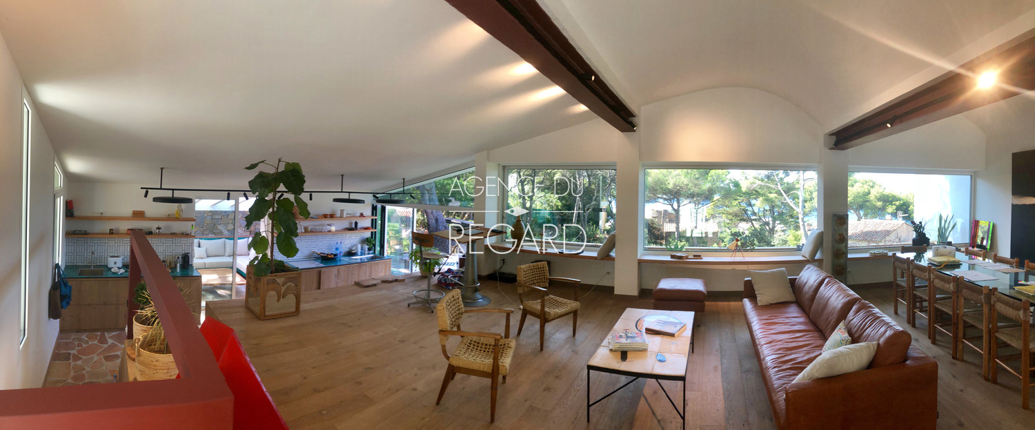 В Giens, в частном и охраняемом районе Полинезии, это свойство около 1177 m2 дома нетипичный дом архитектора полностью отремонтирован в 2018 году. Земля находится на юге и имеет вид на море. Сад красиво благоустроен, он засажен большими соснами и средиземноморскими видами. Эта вилла в форме чайки имеет площадь около 160 м2 и вмещает 3 спальни. Всего в двух минутах ходьбы от бирюзовых бухт и небольшого порта auguier. Бассейн.