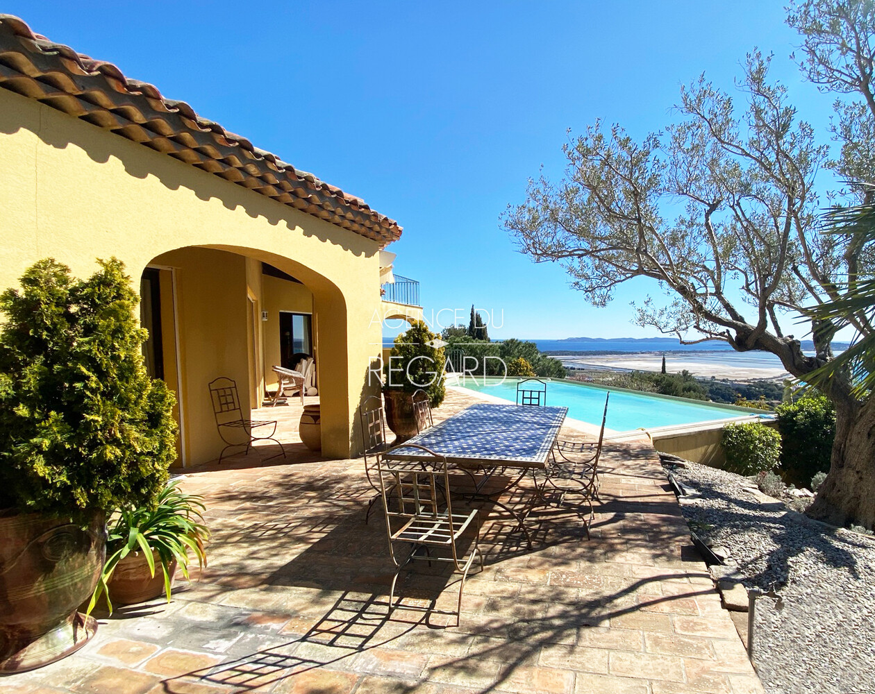 Исключительно! в популярном районе на высотах Йер, имение площадью около 1525 м² с панорамным видом на море и полуостров Жьен. Земля террасирована и структурирована стенами из сухого камня, ограничивающими идеально ухоженные эспланады. Бассейн простирается на главный уровень дома и предлагает захватывающий вид на море Вилла площадью около 215 м² предлагает большие удобства, включая главную спальню площадью около 40 м², выходящую на юг на террасу. Бассейн с подогревом.