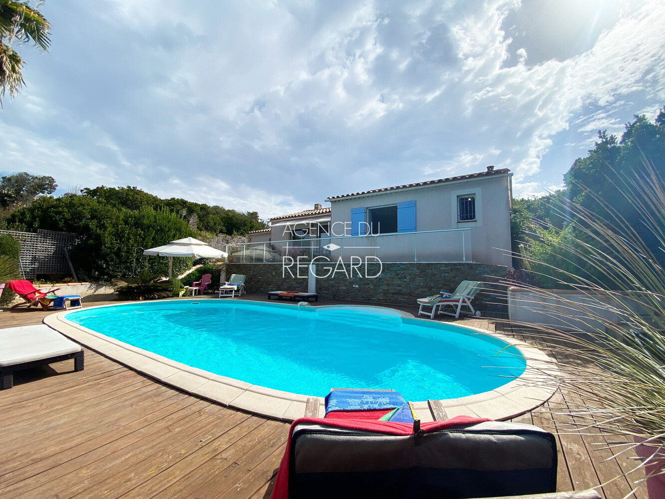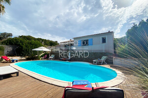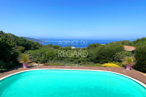 Ile du Levant, characterized by its naturist beaches and coves, this 1000sqm property enjoys a beautiful sea view. The garden is perfectly maintained, landscaped and planted with Mediterranean and exotic vegetation. Villa of 103sqm composed of 2 bedrooms, shower room, bathroom and kitchen open to the living room, extended by a terrace with beautiful sea view and the swimming pool area (10x5m). Cottage. House sold furnished. DPE: D. GES: B.