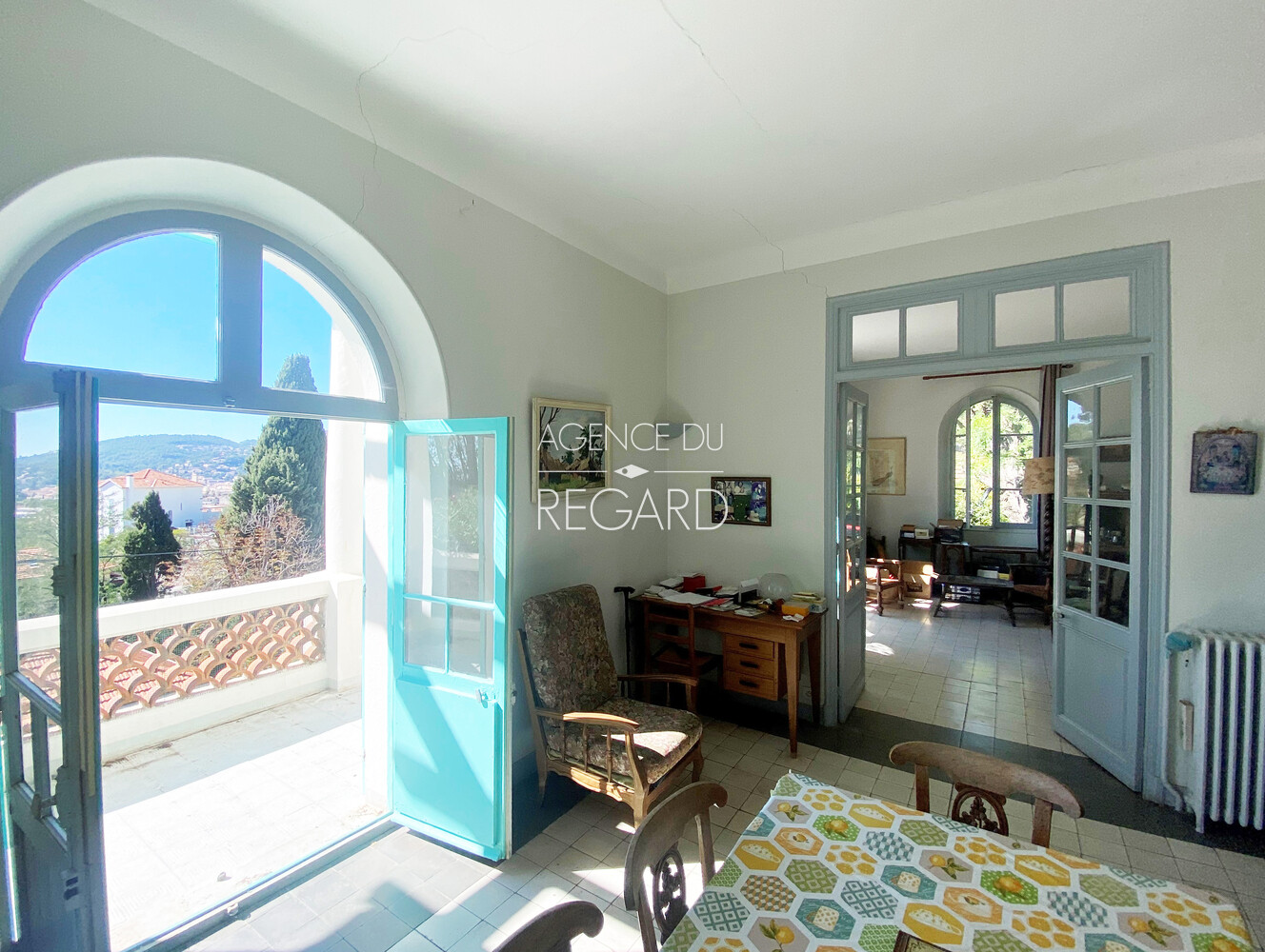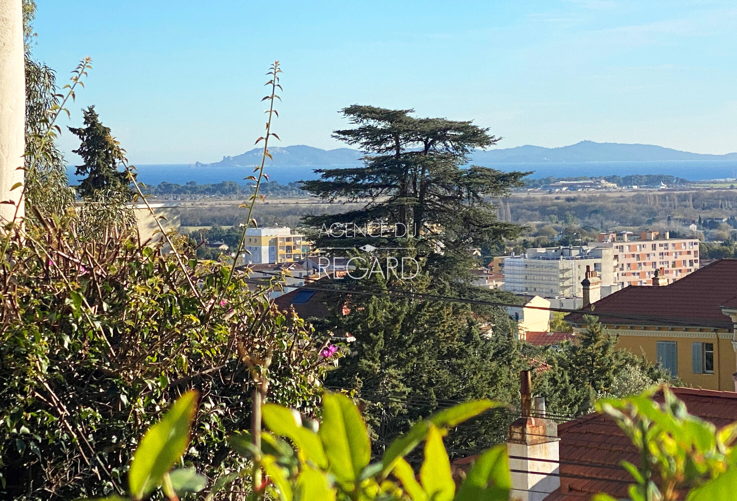 In Hyères in a very popular residential area, within walking distance of shops and schools, this property of 487sqm is south-facing and completely fenced. It benefits from a view of the rooftops of the town of Hyères and its surrounding parks, then in the background, a view of the Giens peninsula, the island of Porquerolles and the sea. Charming house of about 175sqm, built in 1926 on three levels then renovated in 1956. It will require renovation work. It has 7 rooms in total ( including a small room and a bedroom in the basement ). Garage. Former wash house. DPE F.