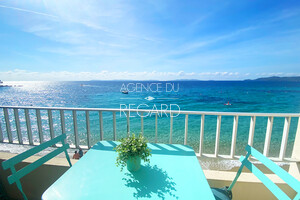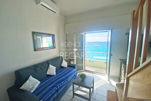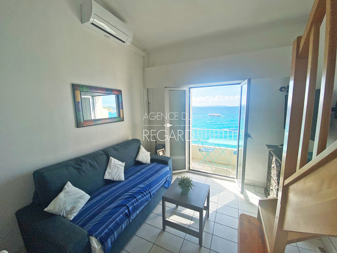 Le Lavandou, this 26.77sqm studio benefits from an exceptional location, on the sea, with feet in the water. From its terrace, you will enjoy a panoramic view of the crystal clear waters and the Golden Islands. It consists of a living room with kitchenette, a bathroom with toilet and a sleeping area on the mezzanine.