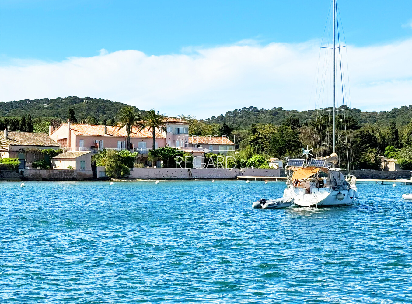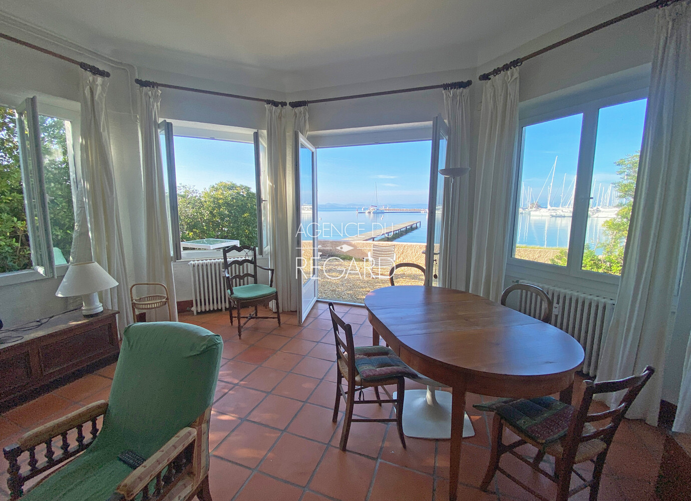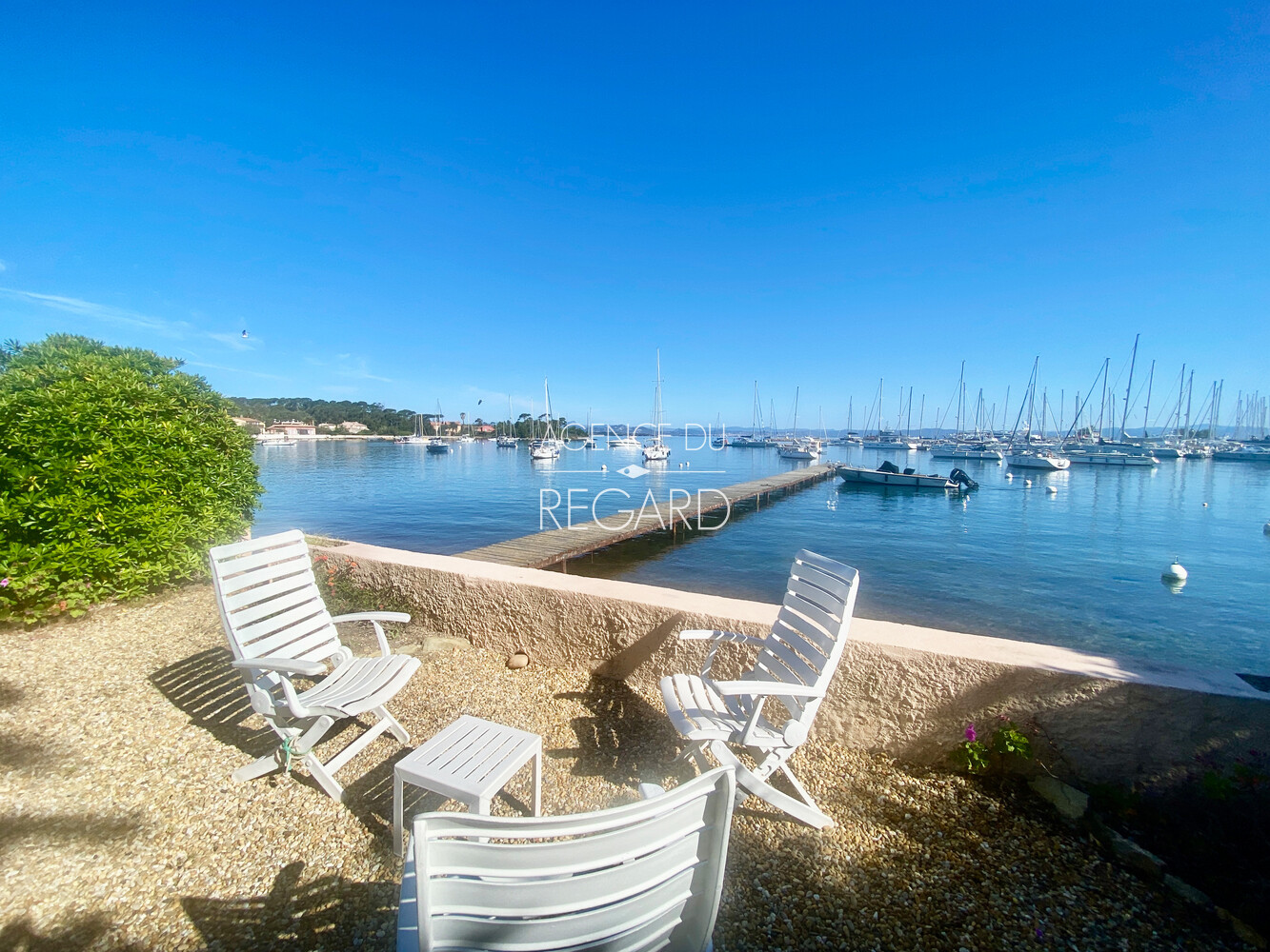 Exceptional! In Porquerolles, right on the water with its pontoon, this 87sqm apartment offers a magnificent view of the sea and the port. It is extended by a private garden of 96sqm, not overlooked, with 12 meters of sea frontage which gives direct access to the pontoon. Calm is required since it is away from the noise and tourist movements. Its access is on one level, via a beautifully flowered courtyard where bicycles can be parked and via a loggia converted into a common entrance hall. It has 3 bedrooms, 2 bathrooms with toilets, a kitchen and a living room which will require renovation work. DPE: E – GES: E