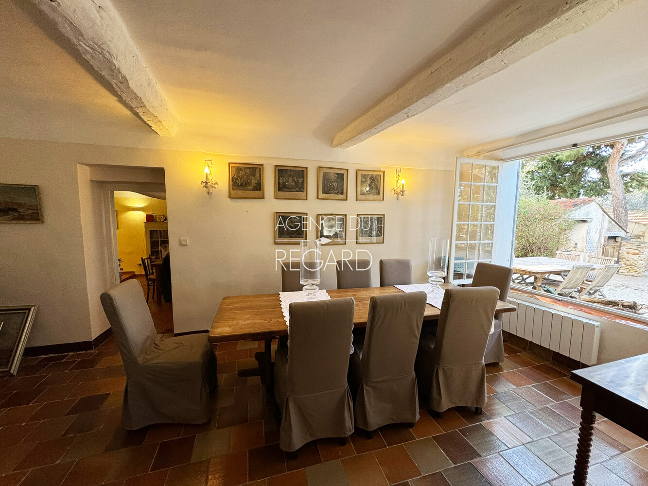 Six-Fours-les-Plages, in the heart of a hamlet, this property of 1,897sqm, entirely fenced is close to shops on foot. Bonnegrace beach is 10 minutes by car. It has a perfectly landscaped and almost flat park, with a swimming pool and its pool house. Country house of about 273sqm, from the 18th century, in Cassis stone which has retained all its charm over the years. It has been perfectly maintained to this day. 6 bedrooms. Its living spaces are extended by a large terrace to the south entirely paved and shaded. Swimming pool 7x6m. Garage. Well. DPE: D – GES: B