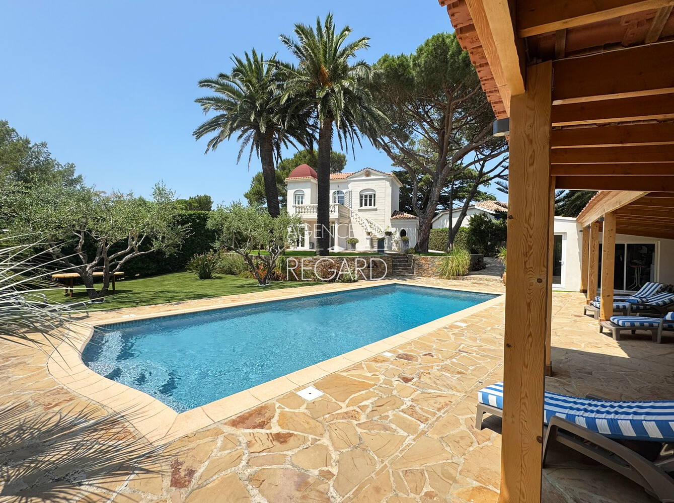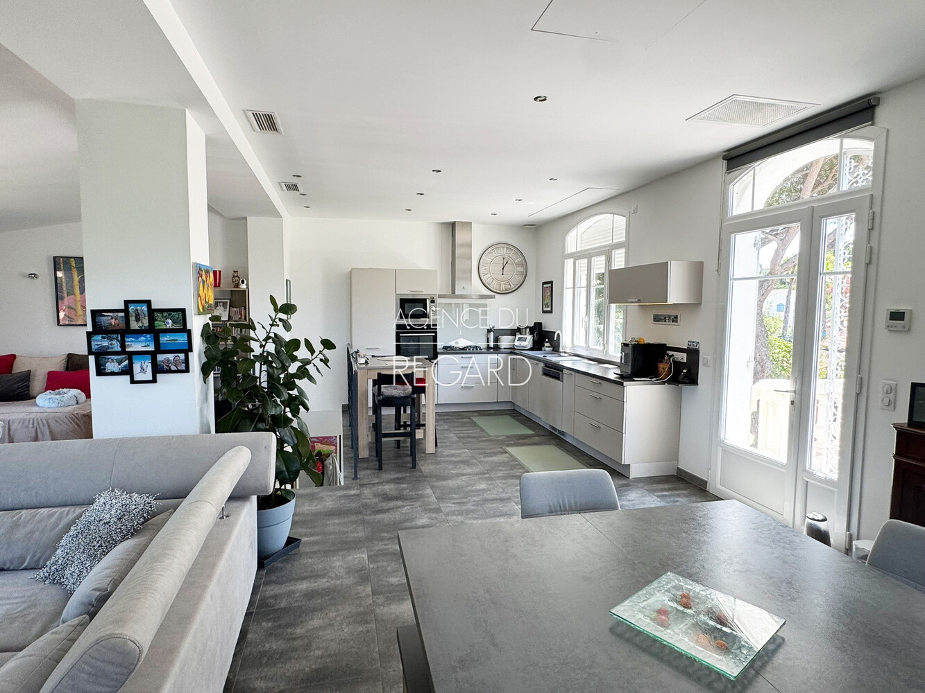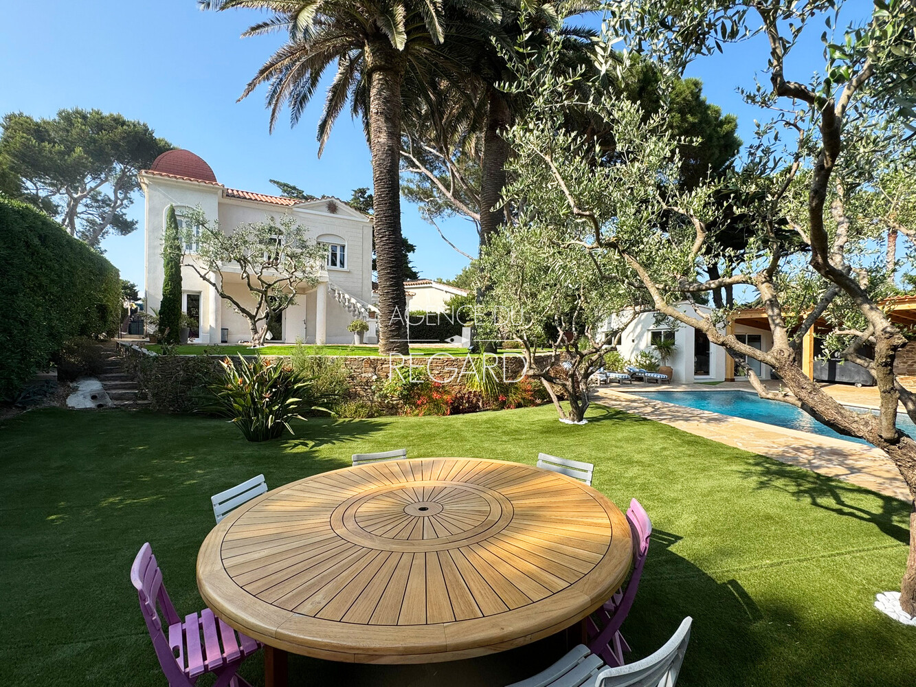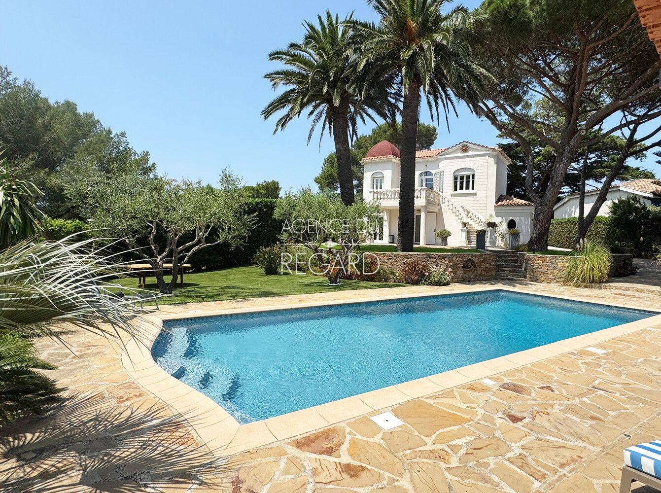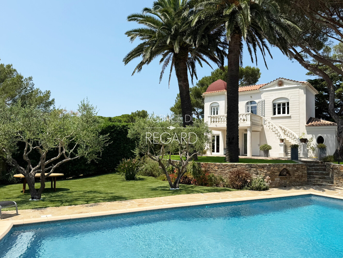 This 1,058sqm property is located in Giens at La Madrague, by the sea and on the edge of the forest. The beach is only 2 minutes by walk via private access. The garden is fully fenced, private, and perfectly landscaped. A pool house with its summer kitchen benefits from the peaceful surroundings. This atypique villa was completely renovated in 2016/17 with quality materials. It enjoys a sea view across Almanarre Bay to Carqueiranne. 3 en-suite bedrooms (possibility of 4). swimming pool 11.50x4.65m
