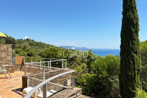 In Bormes-les-Mimosas, in the private and guarded Gaou Bénat domain, this 990sqm property boasts beautiful sea views across the Bay of Lavandou to Rayol-Canadel, including the Levant island. This 106sqm villa features 3 bedrooms and has undergone modern renovations. It extends into terraces that enjoy the sea view. A charming patio surrounded by a low stone wall and vegetation offers a transparent sea view from the living room. Workshop. Laundry room. Garage. DPE : E – GES : B