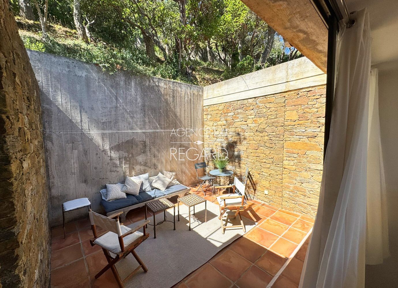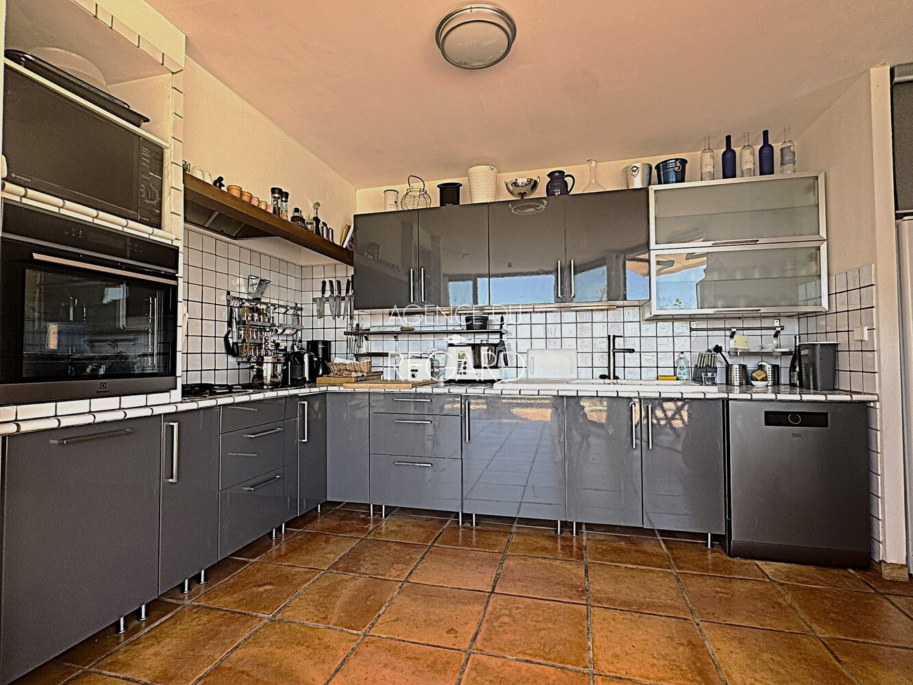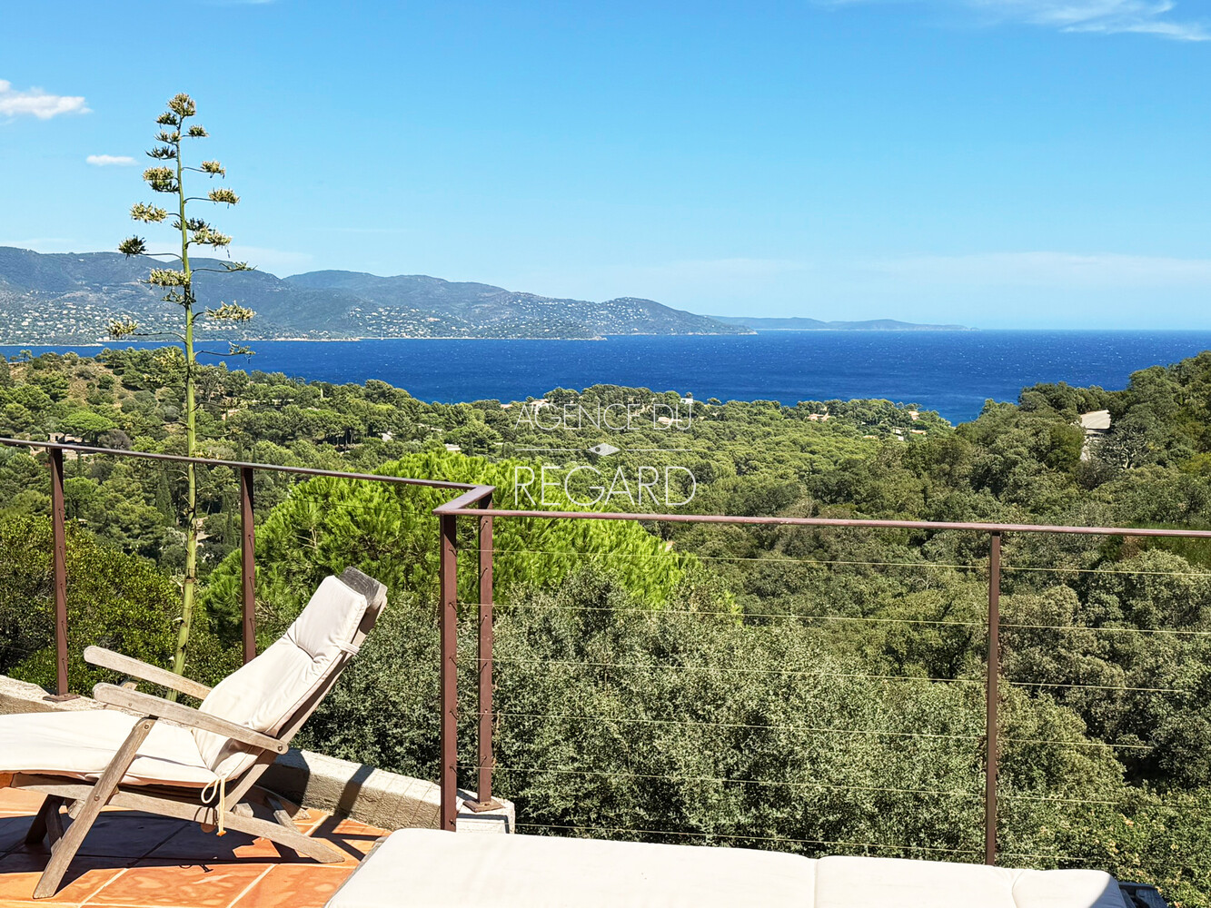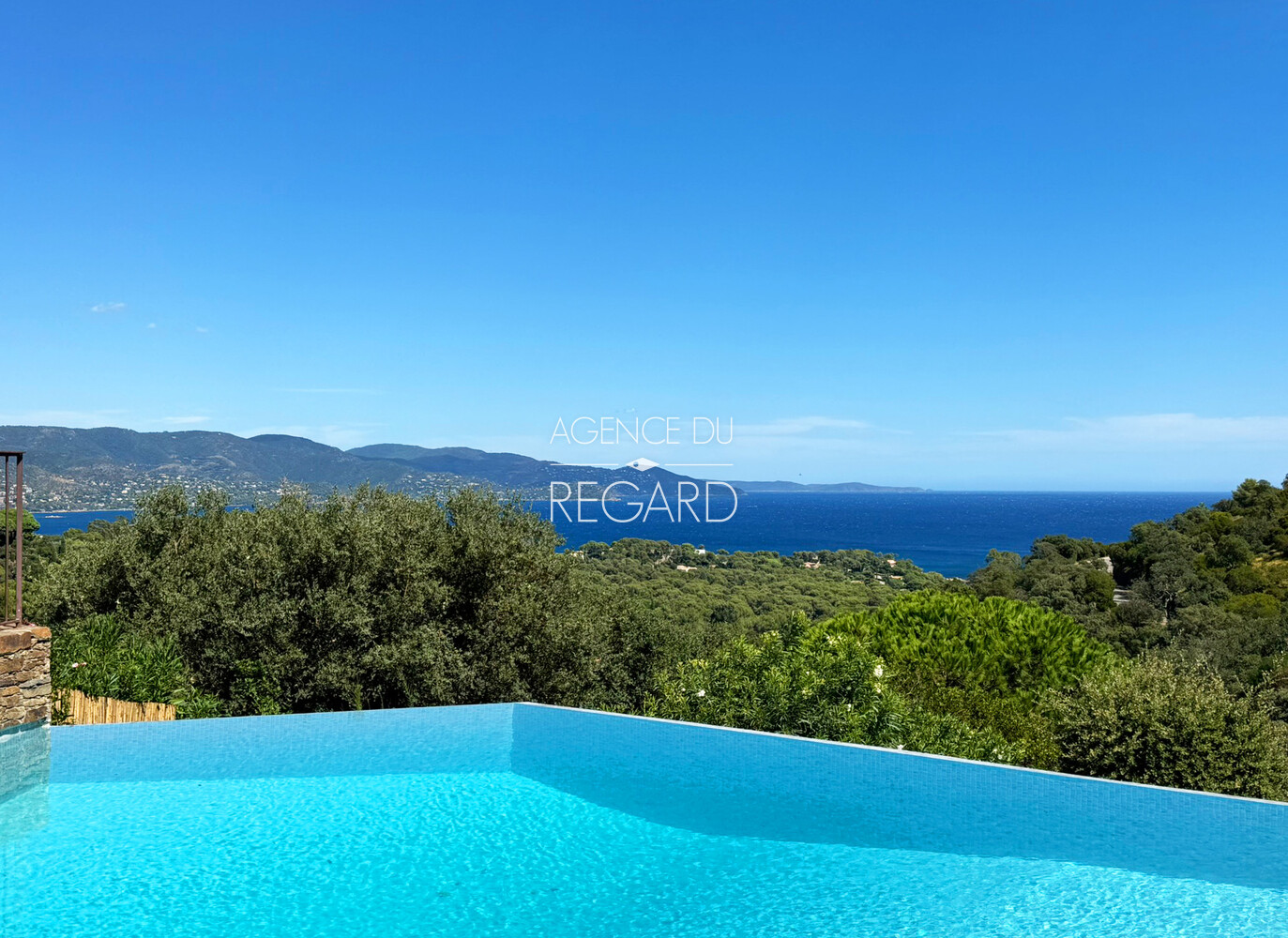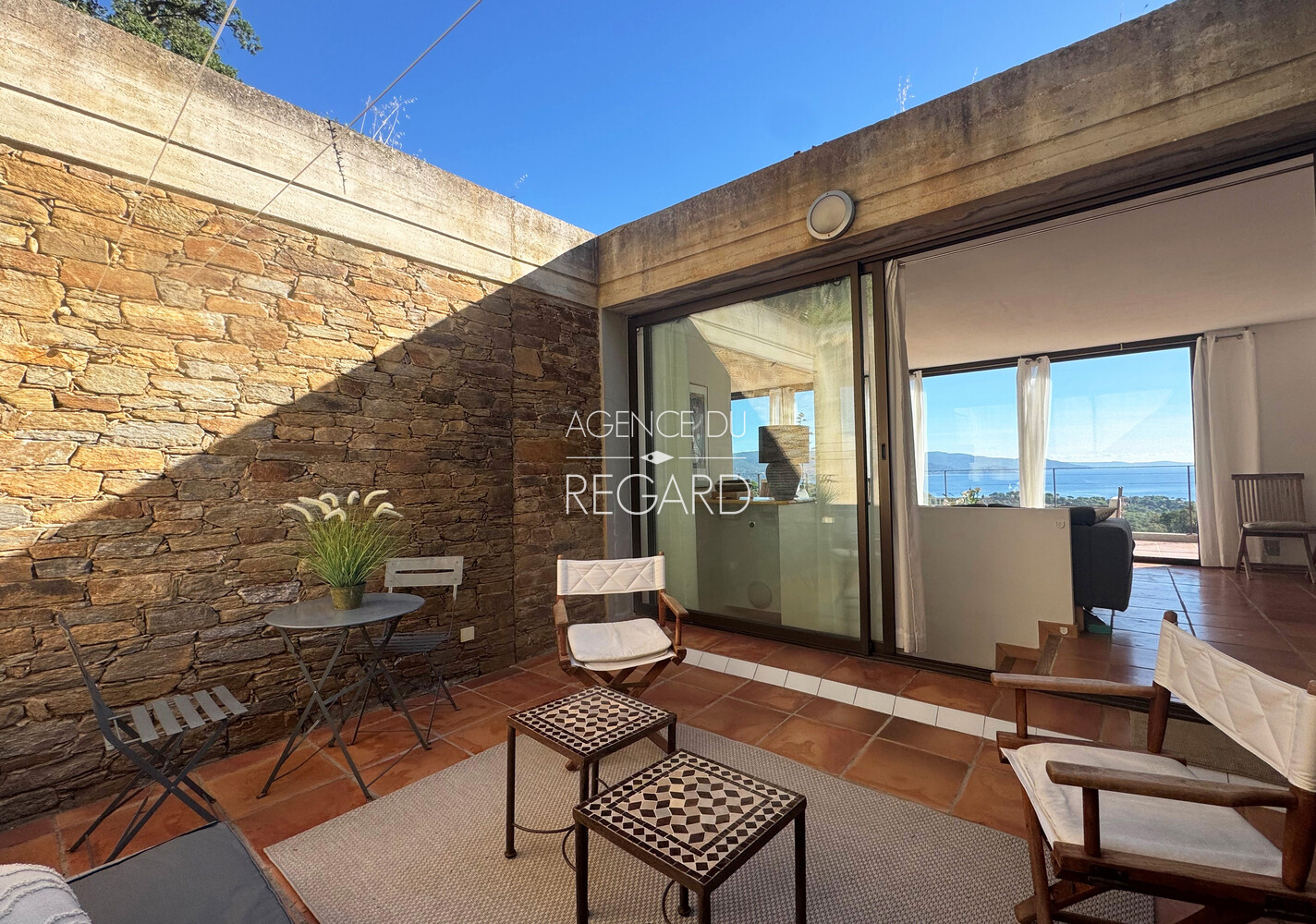 Exclusivity ! In Bormes-les-Mimosas, in the private and guarded Gaou Bénat estate, this 1,000sqm fully fenced property boasts beautiful views of the sea and the bay of Lavandou. Dry stone walls enhance the landscaped garden and the 10x5m pool area. A charming, wind-sheltered patio enjoys the transparent sea view and the peace and quiet of the setting. The villa 110sqm, built in 1990 on two levels, has been perfectly maintained to this day. The beach is a 20 minutes walk away. Two garages. Workshop.
