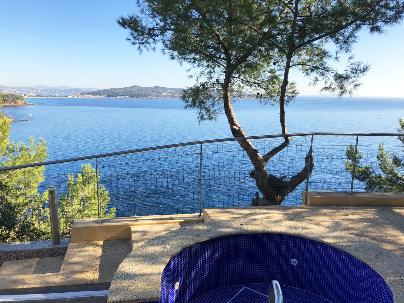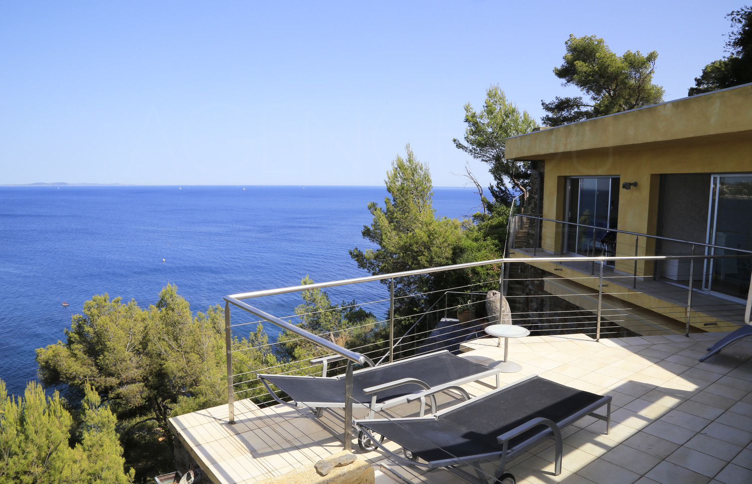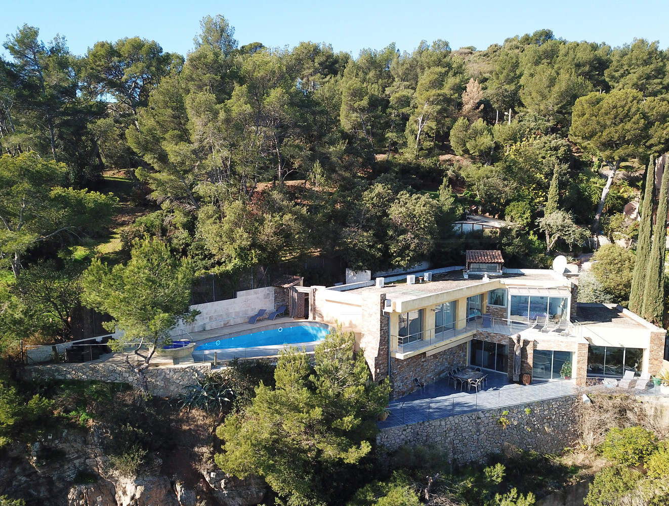In La Seyne-sur-Mer, in a very quiet area, this waterfrontproperty of about 2,120m2 is located directly by the sea. It offers a beautiful panoramic view of the sea. A gate gives access to the flat rocks and the sea. Swimming is very easy from the bottom of the property or on the sandy beach of fine sand at 200 meters. The house with sea view of about 217.30m2 was built on two levels in the 1980s and was fully rehabilitated in 2001. Contemporary, its openings are all in large windows opening onto comfortable terraces overlooking the grounds and enjoying a magnificent view of the sea. It has four rooms facing the sea.