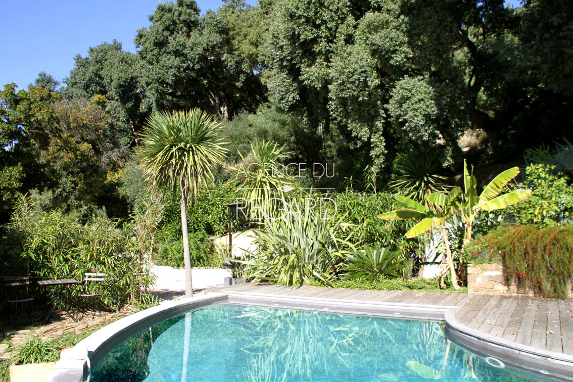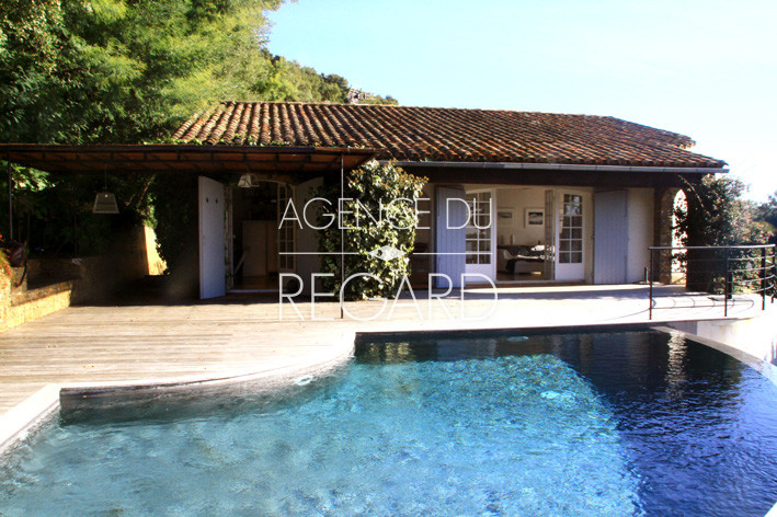 On the hillside in Rayol Canadel, this property of 1170 m² offers a panoramic view to the south and onto the île du Levant. In the middle of its Mediterranean garden, the house of about 160 m² understands 4 bedrooms, 2 living rooms and an independent apartment. Overflowing swimming pool.