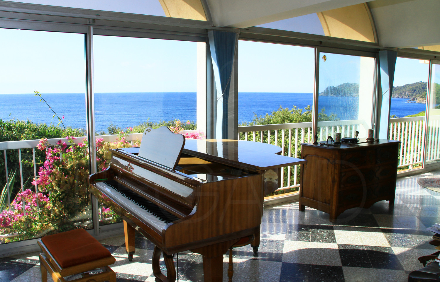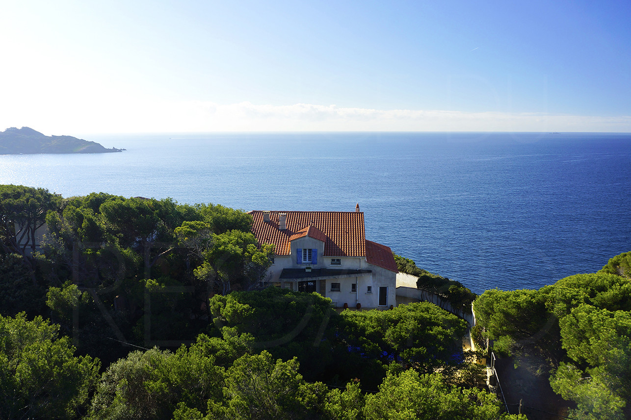 To the South, on the peninsula of Giens, in a private and guarded domain, this fully fenced waterfront property of about 1076sqm, has a dominant sea view. The waterfront villa of about 200sqm (plus 100sqm of annexes) offers generous volumes and light. From the entrance, the sea view, from the bay windows in the living room, is omnipresent. 3 bedrooms. Swimming pool. Garage. Independent studio. Energy rating: C