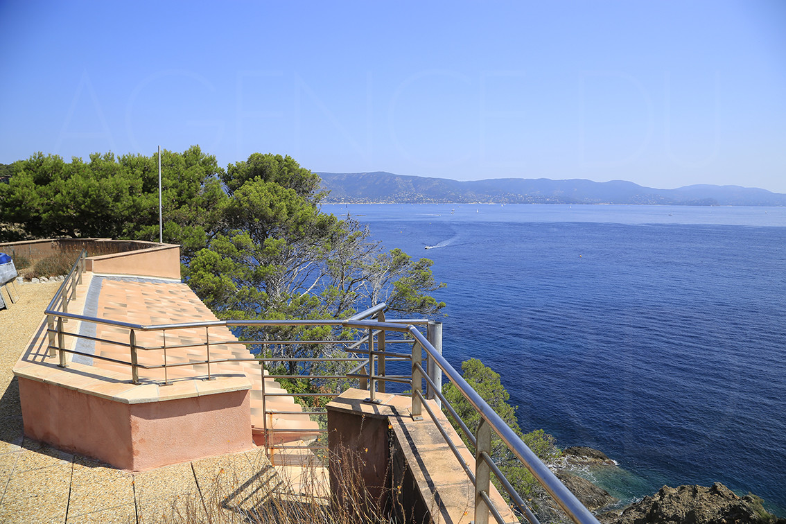 les-Mimosas - В частной области Кап-Бенат, земля 1384m2 предлагает нависающие панорамный вид на море, с видом на бухту с чистыми скалами и бирюзовыми водами. Солнечный весь день, дом около 164sqm включает в себя 4 спальни и две большие гостиные, каждый из которых открывается на террасу с панорамным видом на море. Частный прямой доступ к бухте и ее естественному бассейну (20x7m). Терраса на крыше с видом на 360 градусов. Гараж (1 автомобиль).