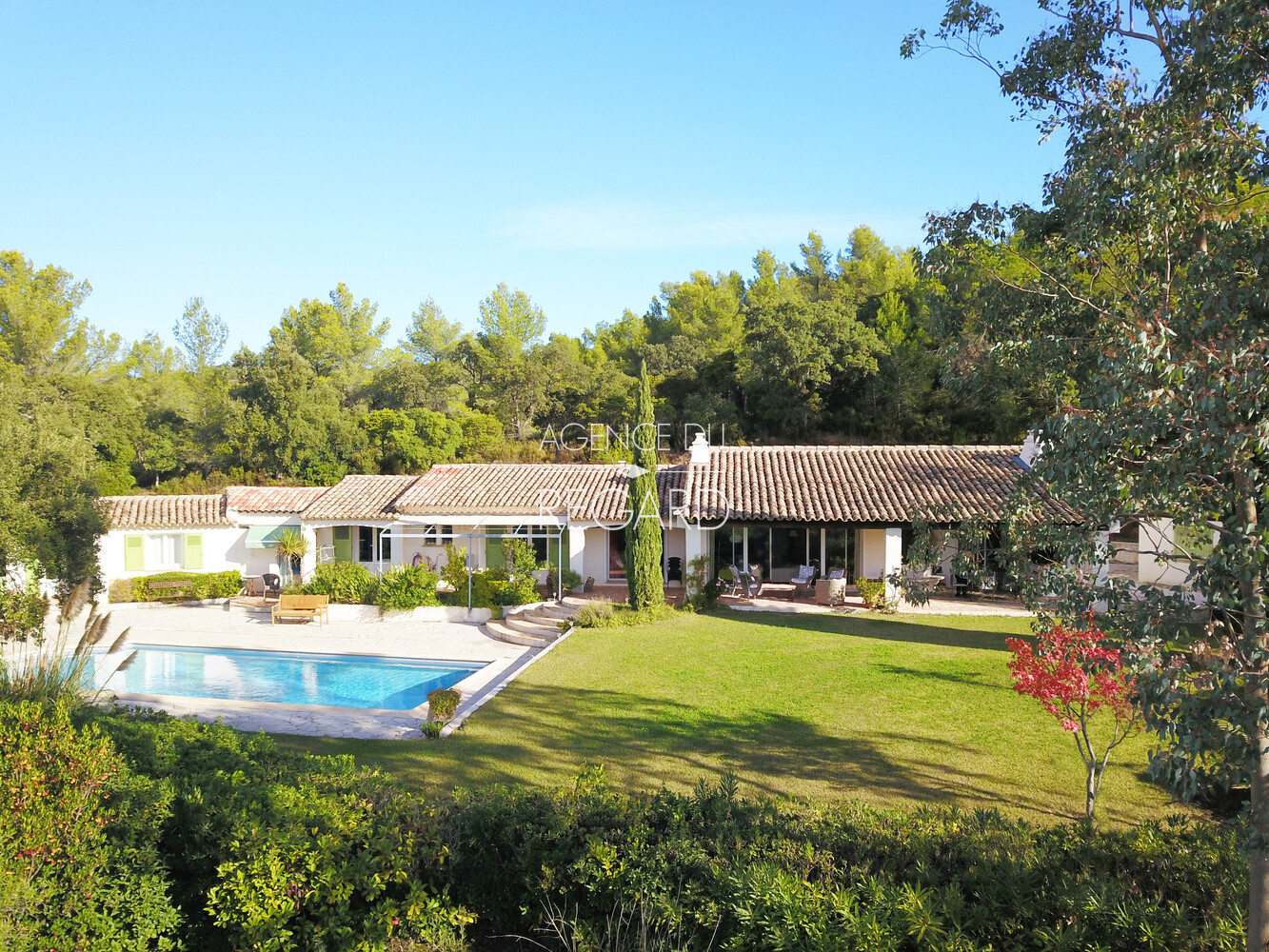 On the hills of the Massif des Maures, the 3.5ha plot faces south and overlooks vineyards, olive groves and the sea. The agricultural property offers a sea view of the island of Porquerolles and the peninsula. of Giens. Single-storey villa of 236sqm + caretaker's accommodation of 85sqm with 7 bedrooms in total. All the rooms have a view of the vegetation or the sea and open onto the numerous terraces. Swimming pool (12.5x5m). Pool house. Garages.